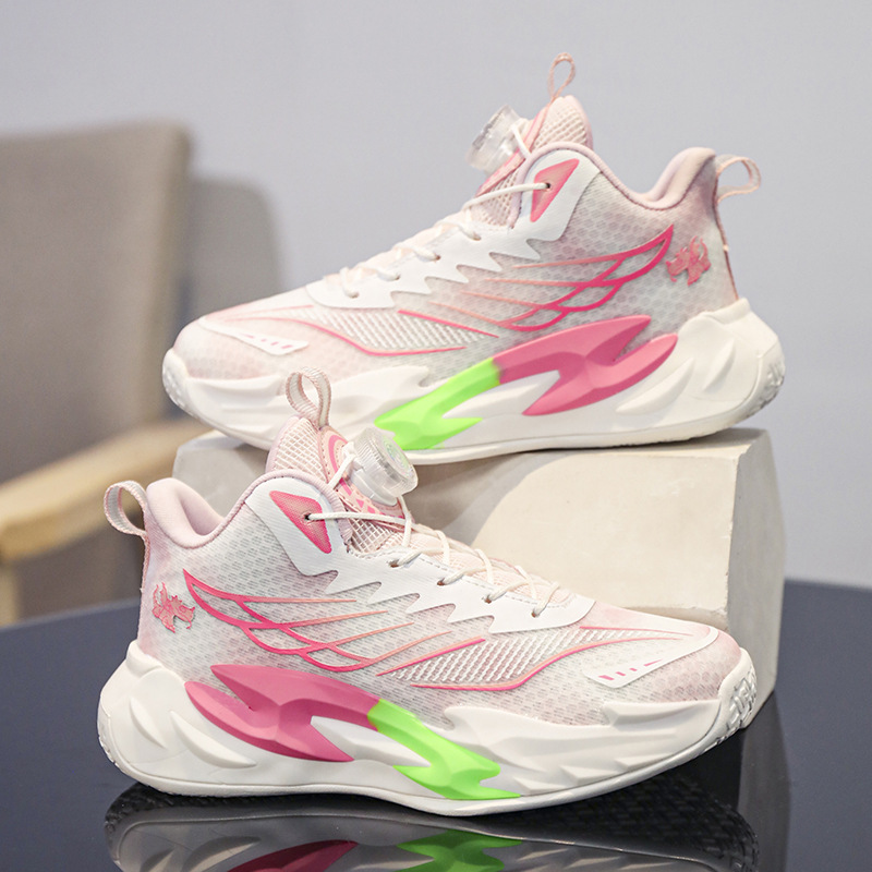 여자 농구 신발 여름 2025 새로운 어린이 경량 미끄럼 방지 전문 훈련 스포츠 신발 여자 중대형 어린이