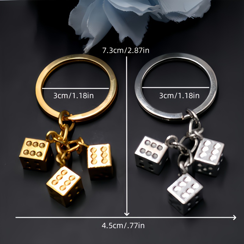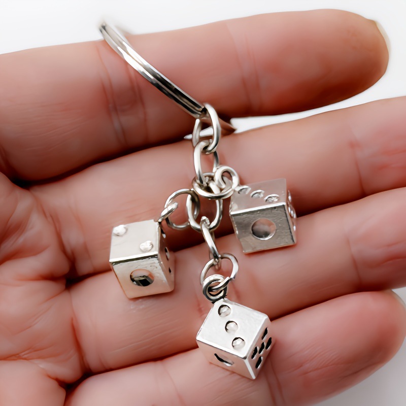 두 가지 스타일의 크로스보더 힙합 스타일 행운의 주사위 매력 금속 열쇠고리 DIY 쥬얼리 선물 행운의 자동차 열쇠