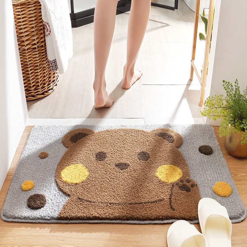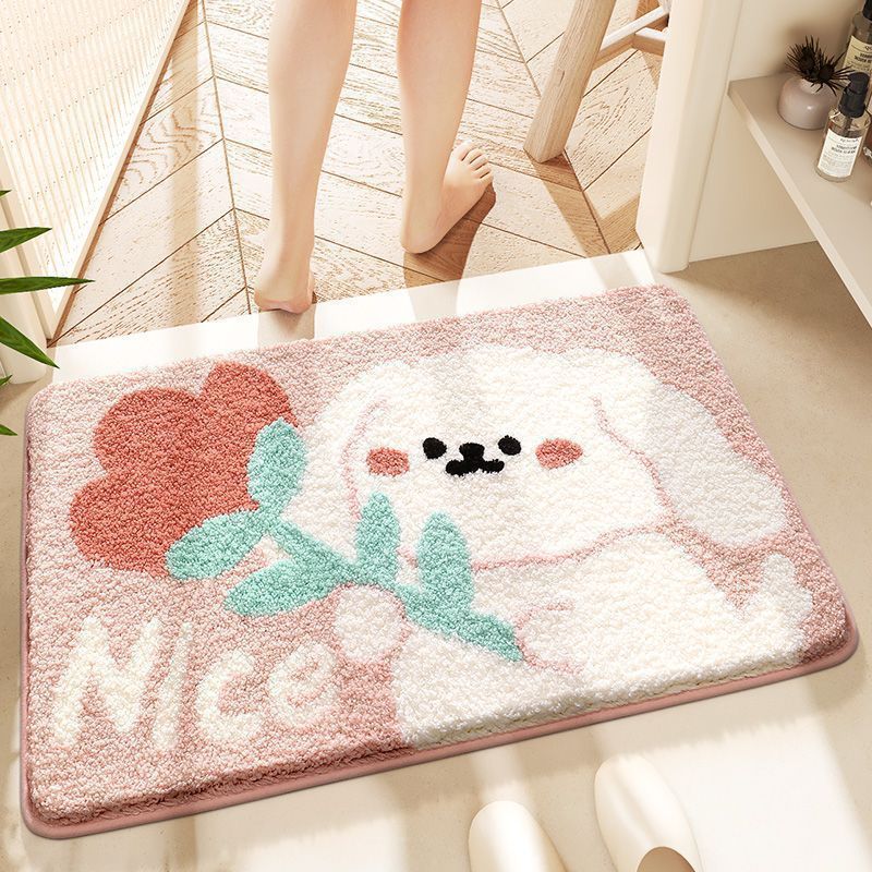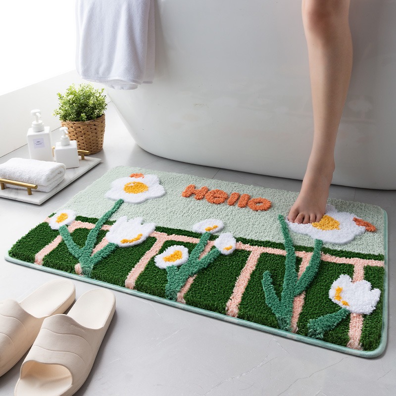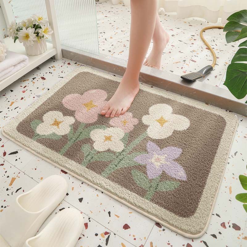 심플하고 신선한 꽃무늬 욕실 화장실 모조 캐시미어 바닥 매트, 얼룩 방지, 방진 및 내마모성 방 문 장식 바닥 매트스토어 가기