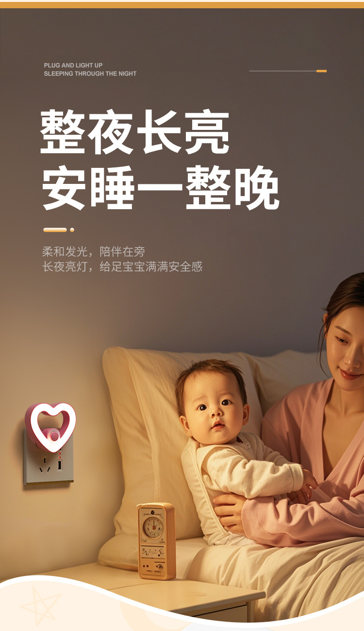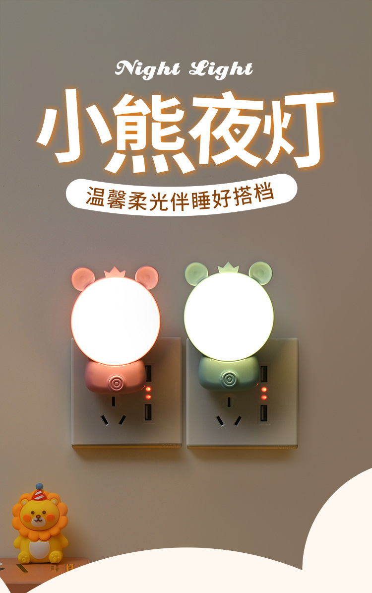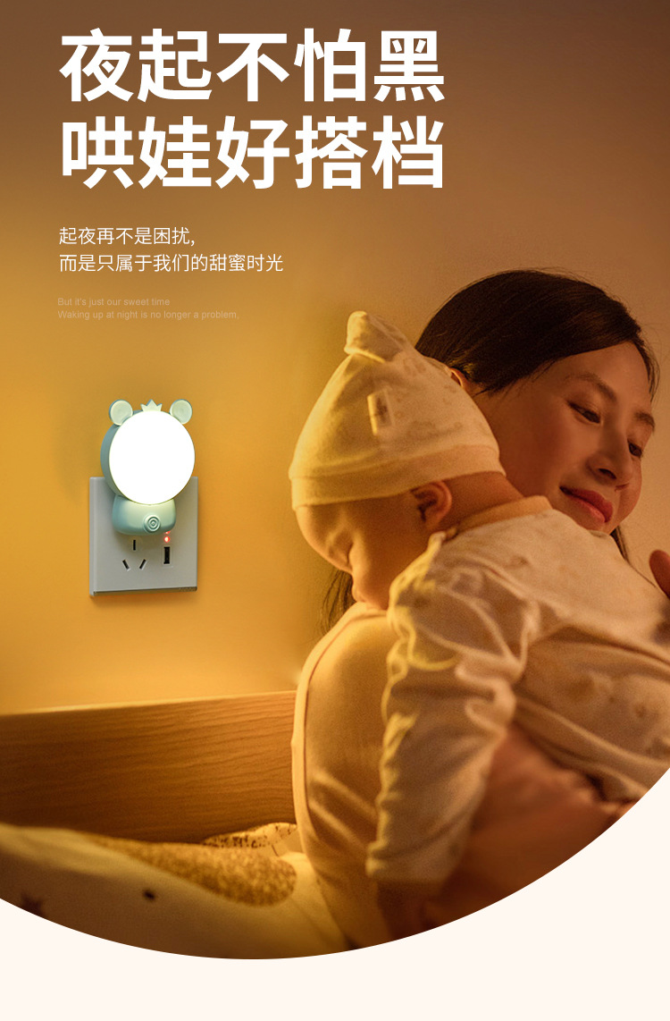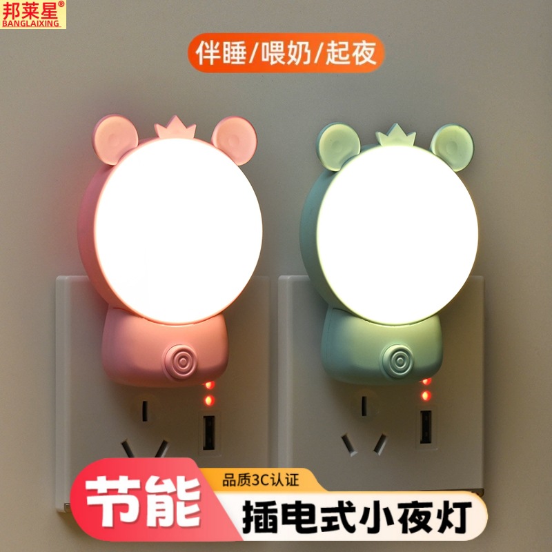 야간등 침실 수면등 어린이 침대 옆등 플러그인 스탠드 램프 LED 스위치 포함 벽등 노인용 야광등
