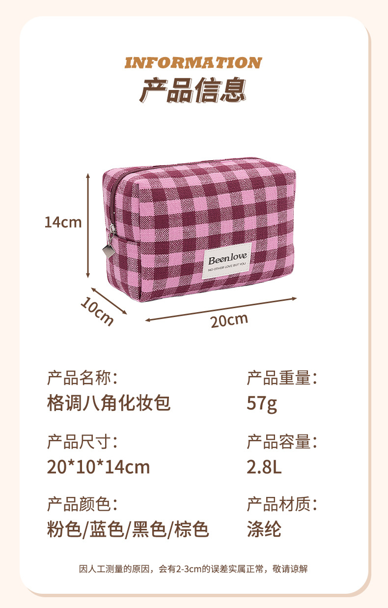 새로운 간단한 화장품 가방 작은 여성의 휴대용 화장품 립스틱 보관 가방 여행 격자 무늬 세면 용품 가방