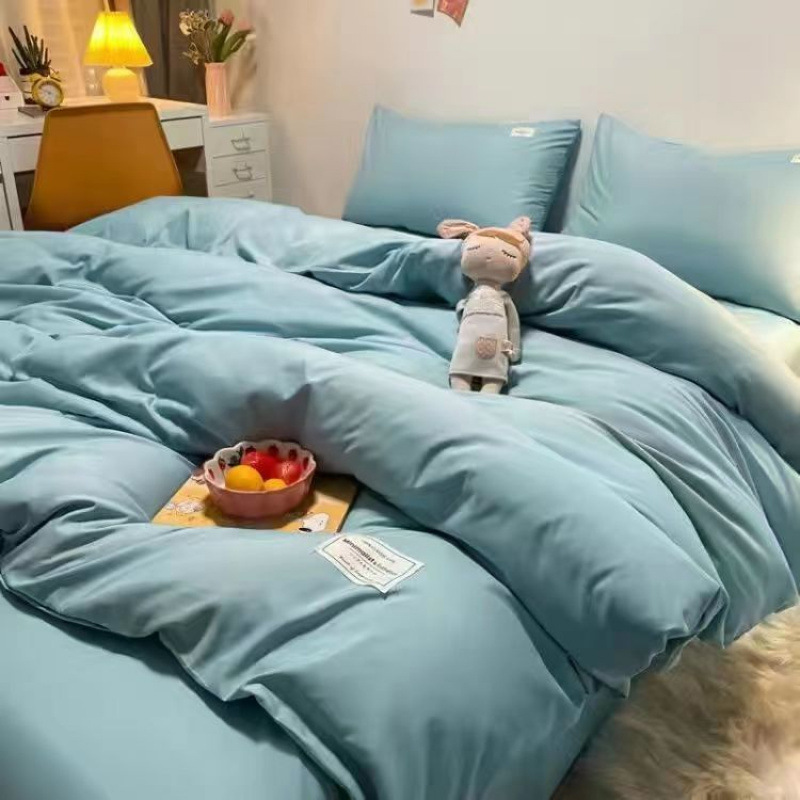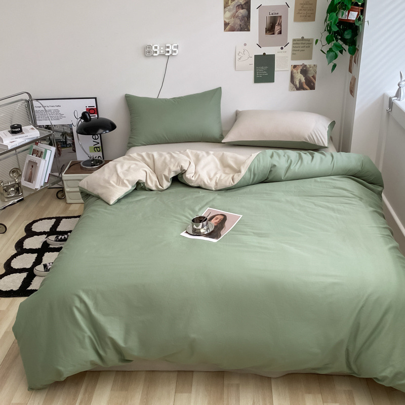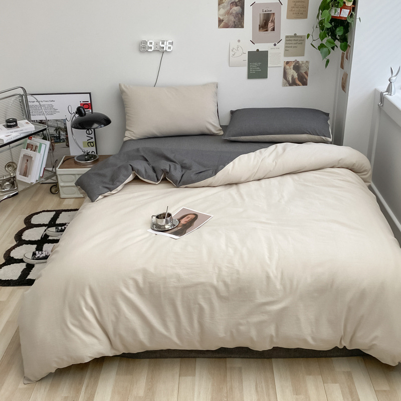 더블 피스 워시 코튼 퀼트 커버 침대 시트 침대 모자 기숙사 3 피스 세트에 대한 북유럽 스타일의 단색 아트에 4 피스 세트