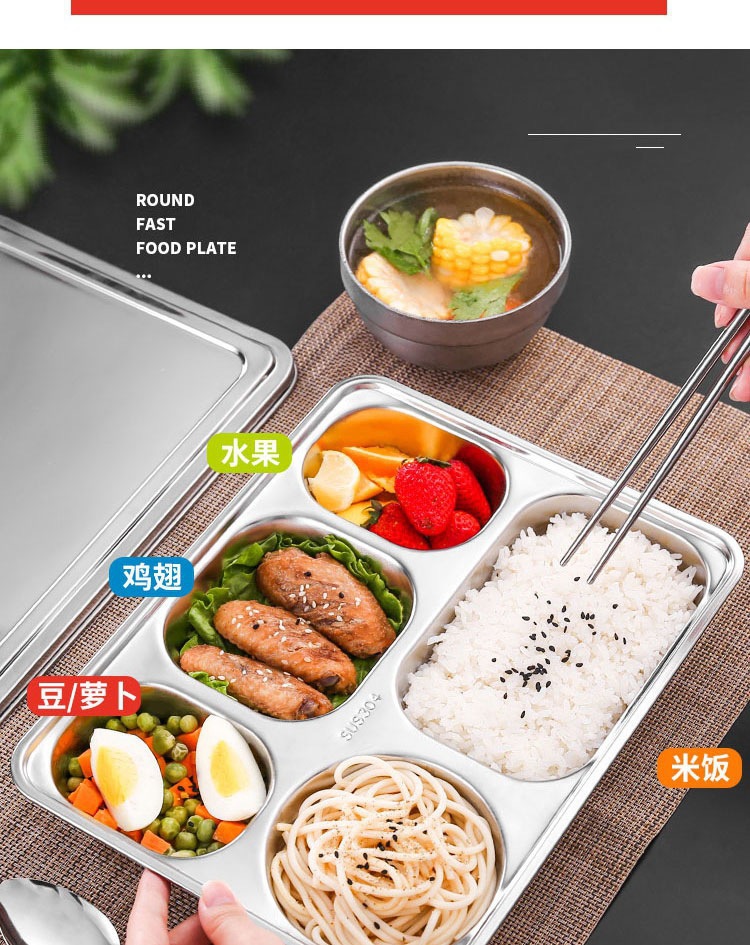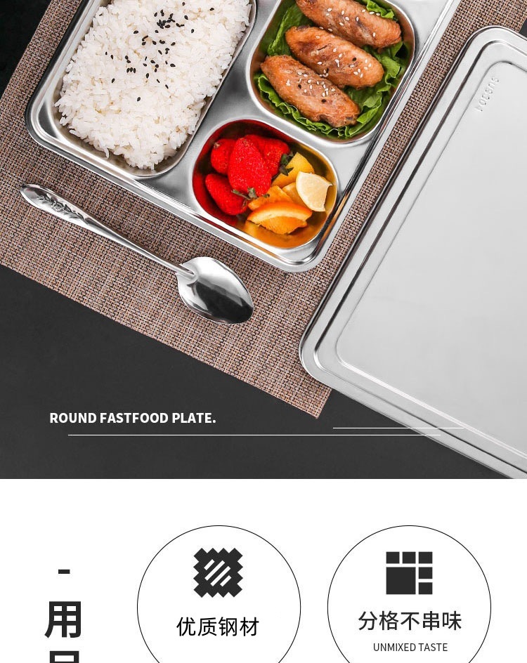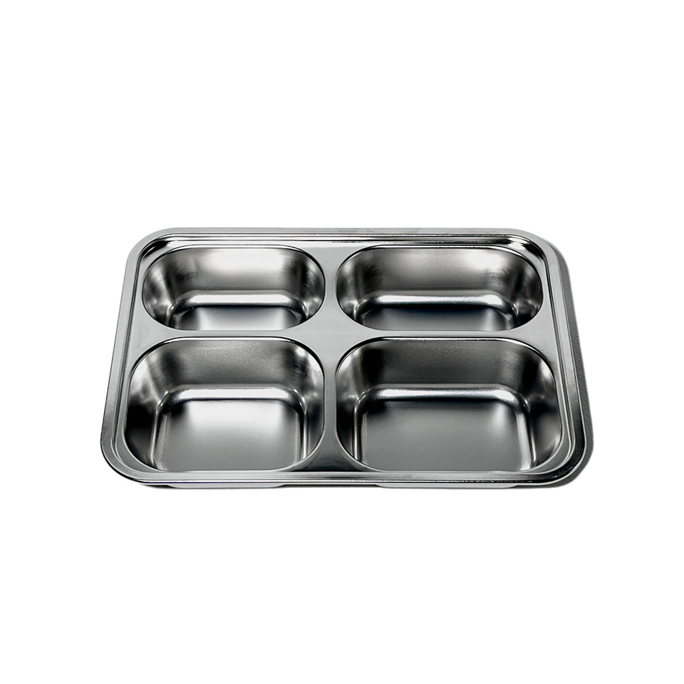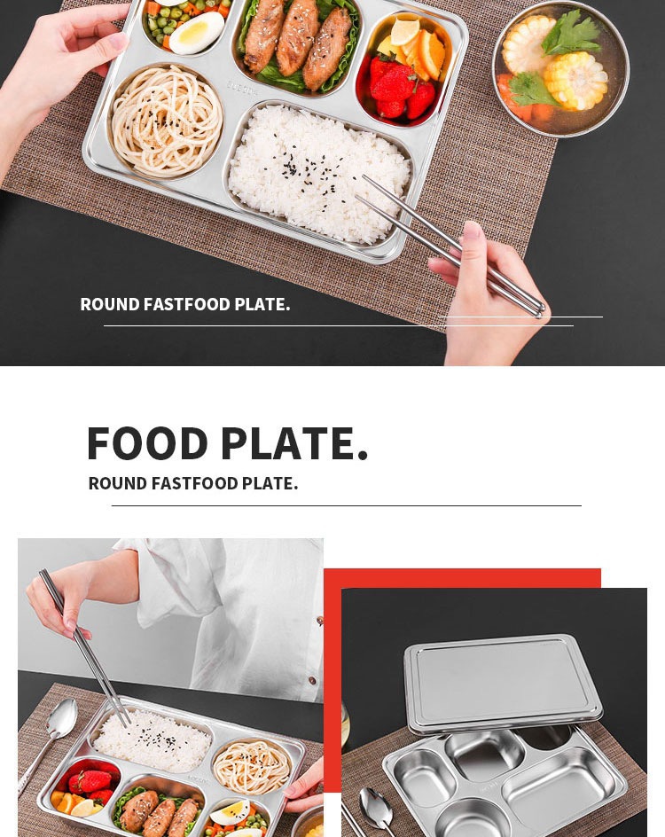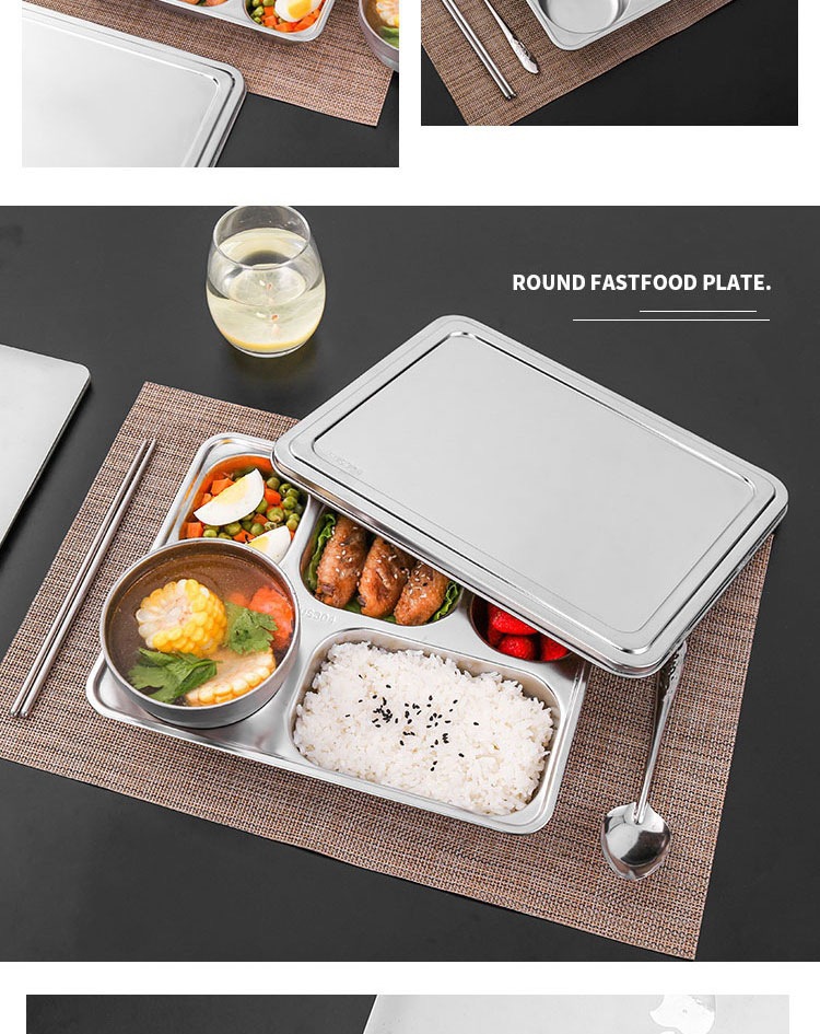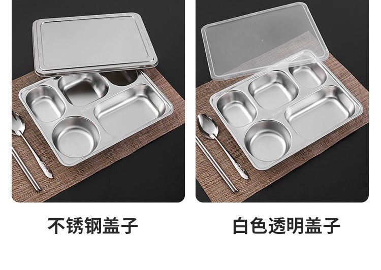스테인리스 분할식판, 학교 식당용 성인 및 어린이용 사각형 분할식판, 깊은 뚜껑이 있는 패스트푸드용 식판스토어 가기