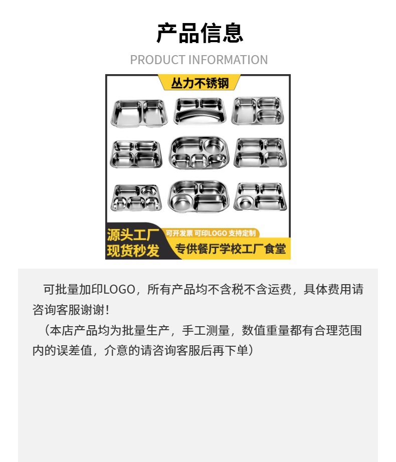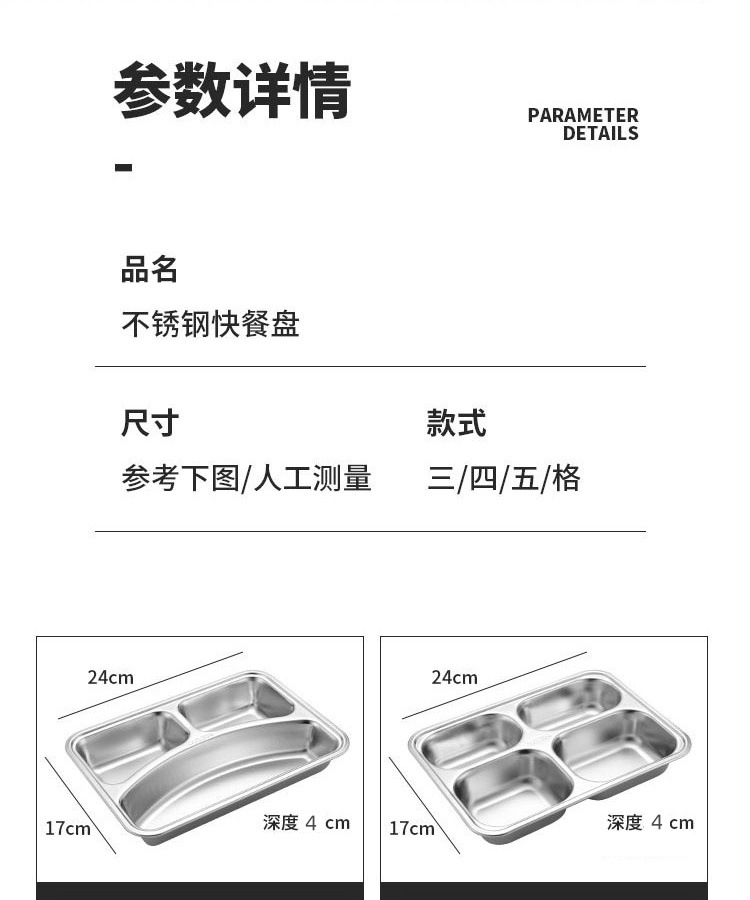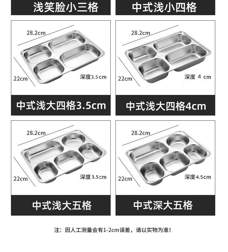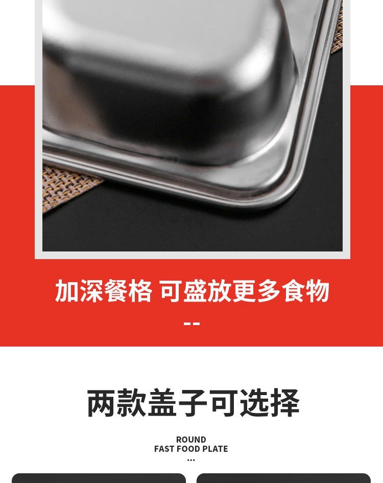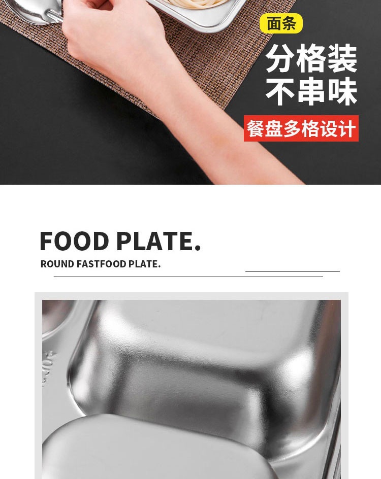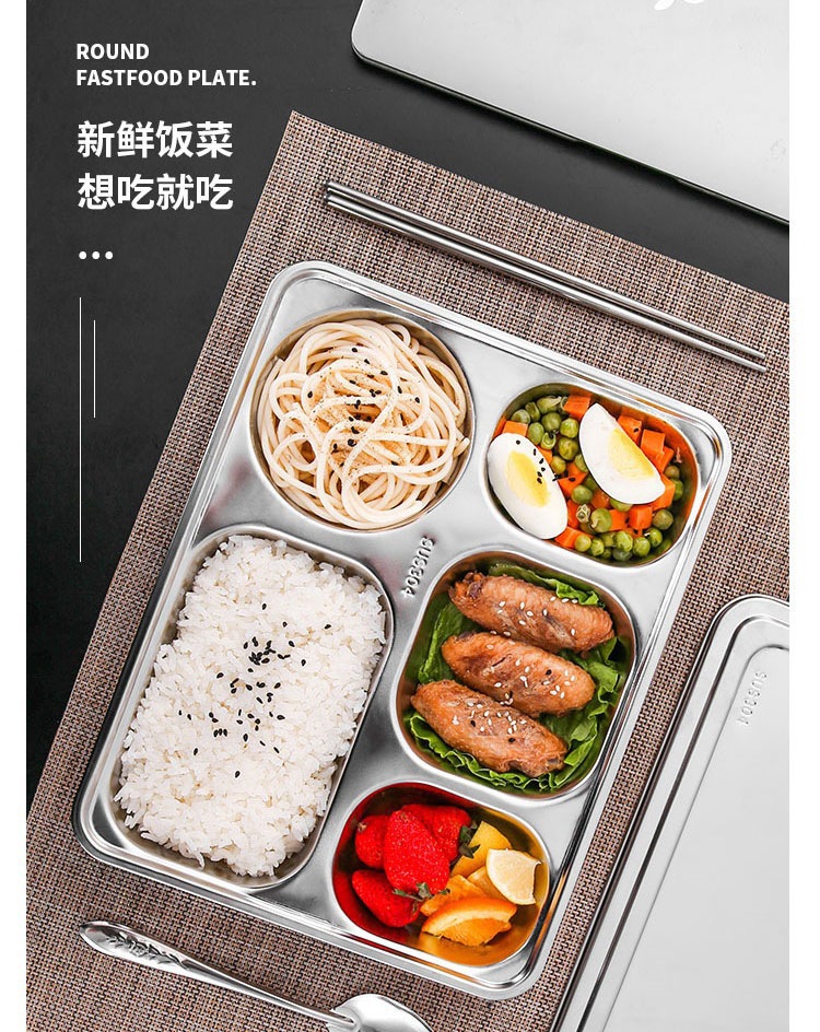 스테인리스 분할식판, 학교 식당용 성인 및 어린이용 사각형 분할식판, 깊은 뚜껑이 있는 패스트푸드용 식판스토어 가기