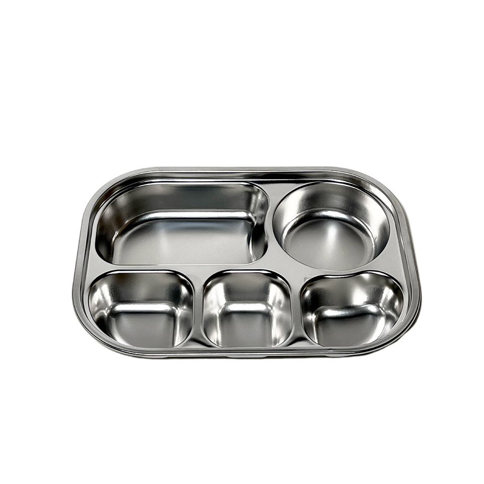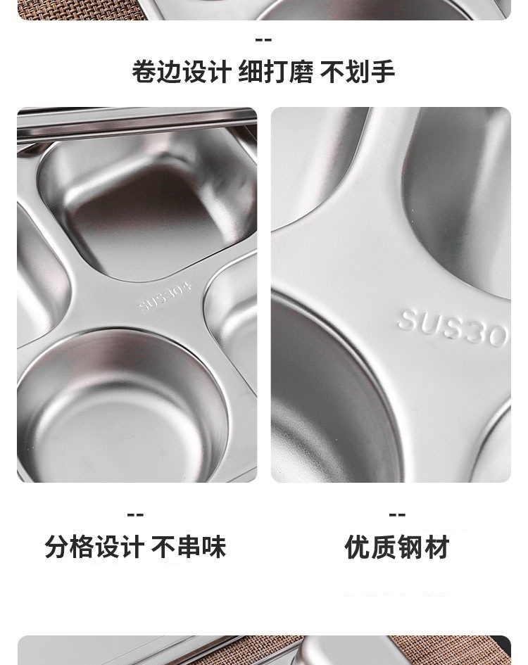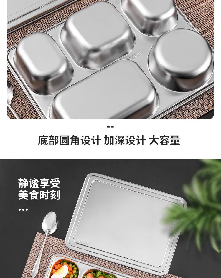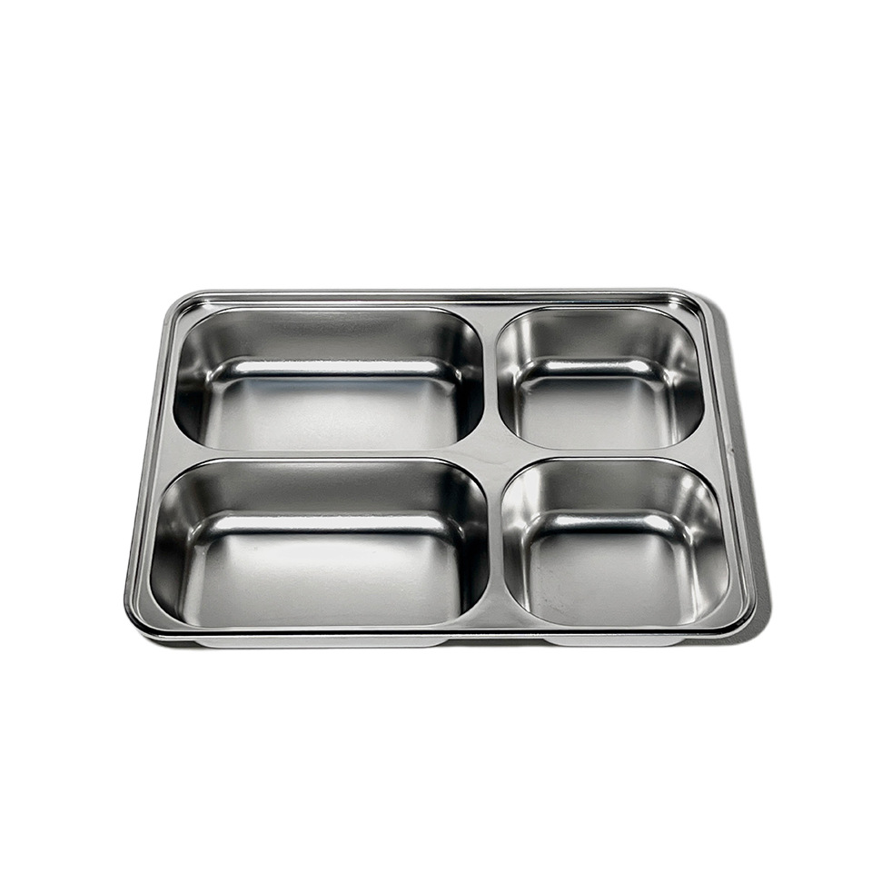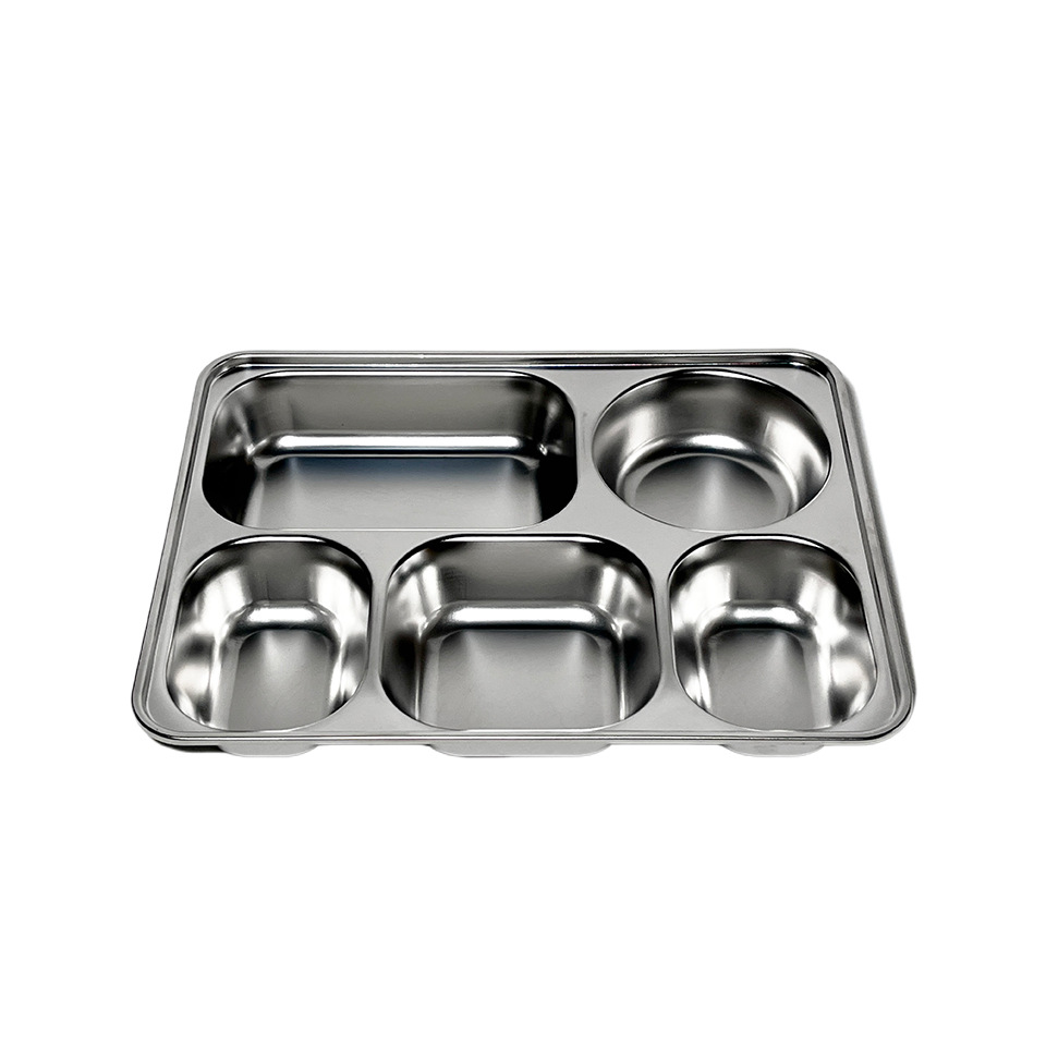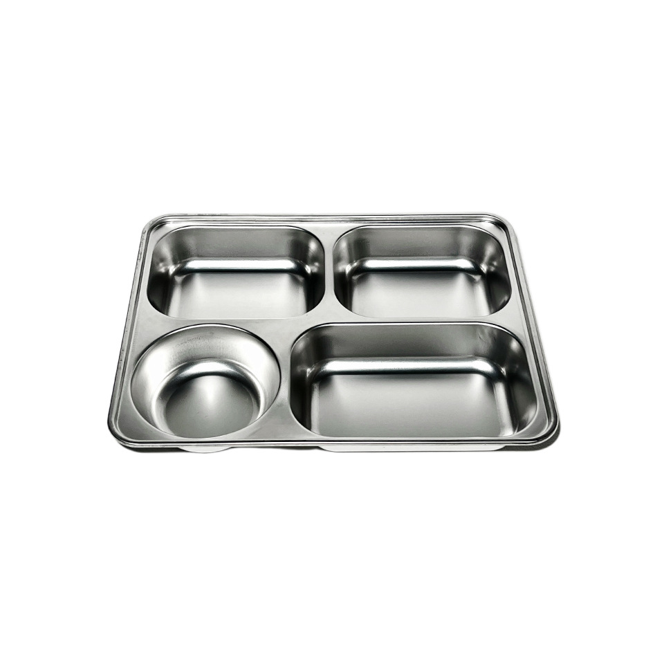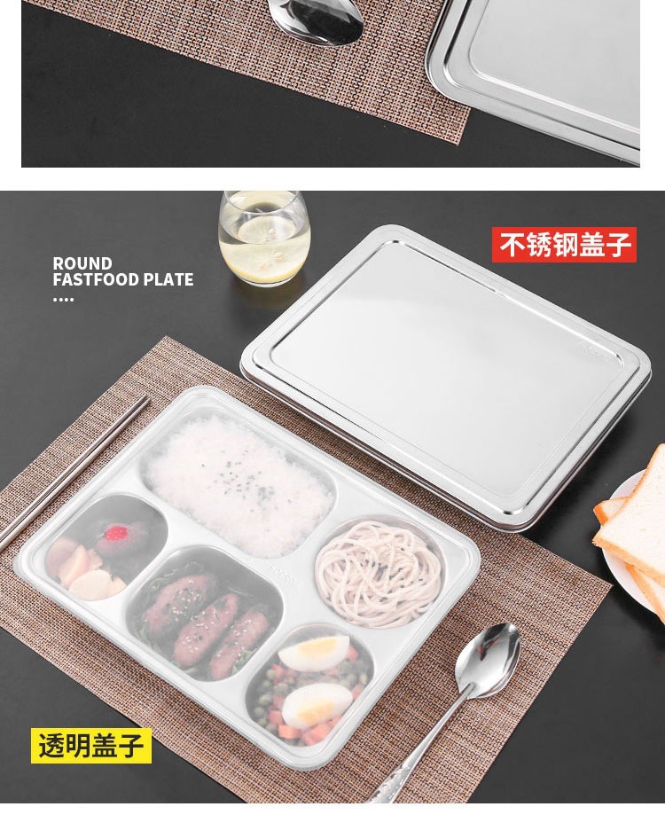 스테인리스 분할식판, 학교 식당용 성인 및 어린이용 사각형 분할식판, 깊은 뚜껑이 있는 패스트푸드용 식판