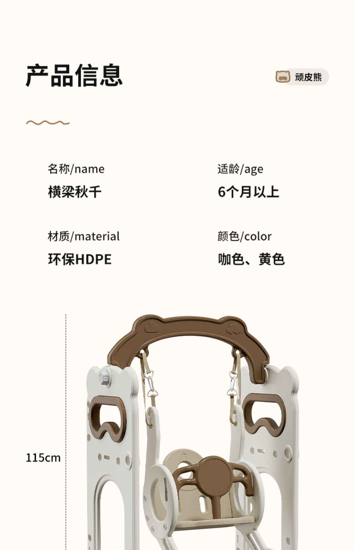 • 확대되고 강화된 장난꾸러기 곰빔 그네 - 커피색