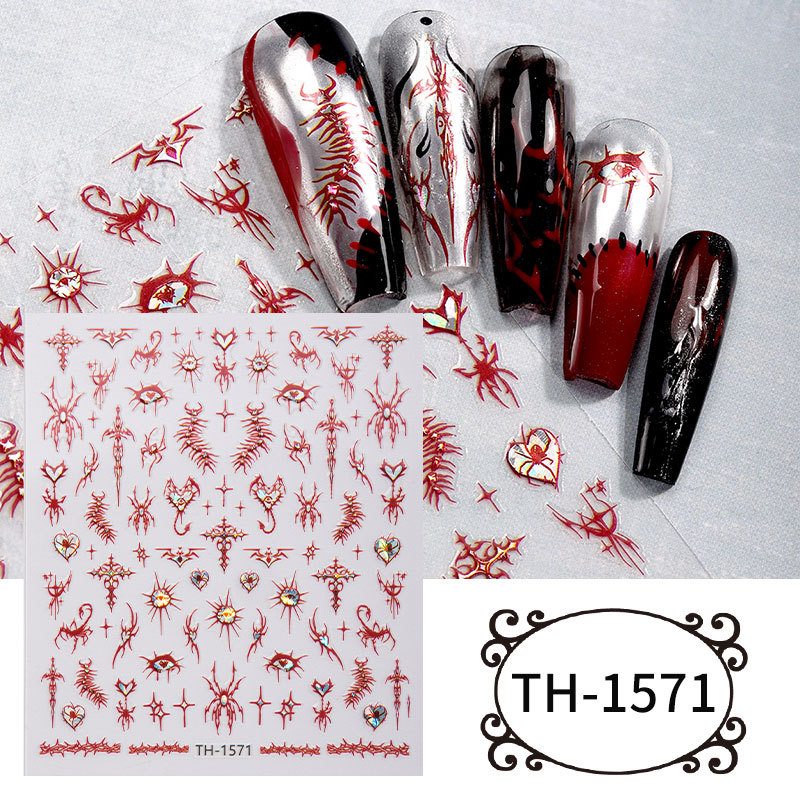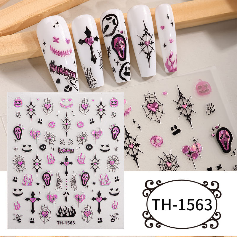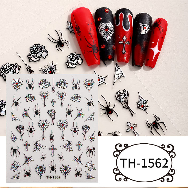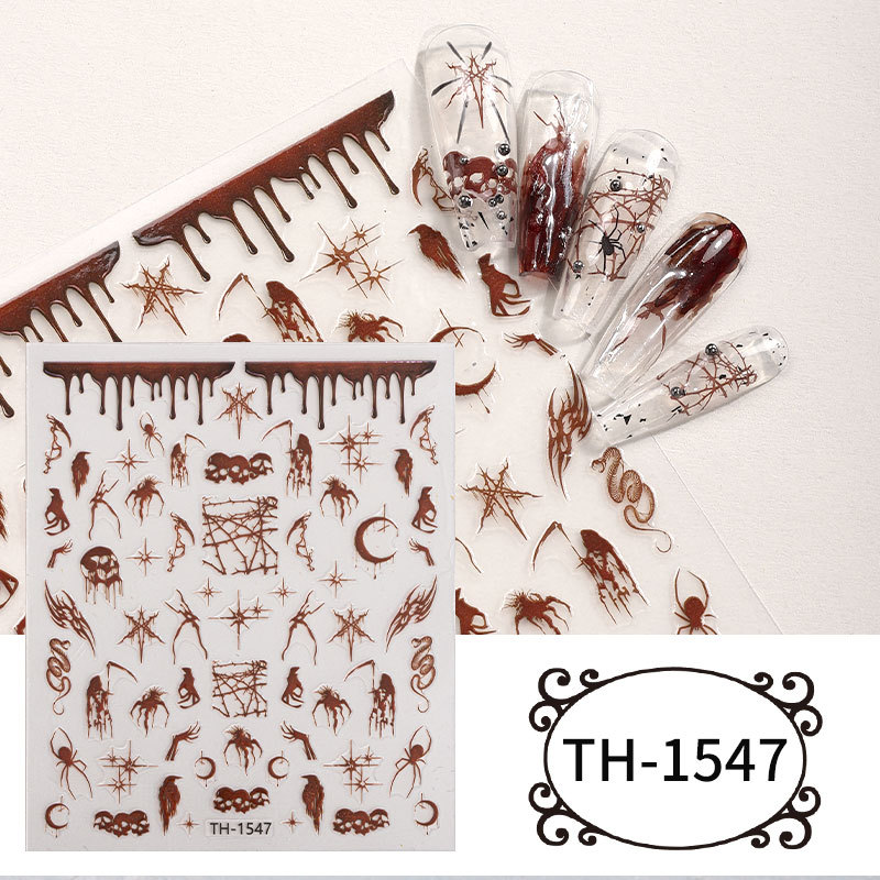Zhengxiang 공장 맞춤형 할로윈 네일 아트 스티커 DIY 다크 크로스 보더 유럽과 미국 유령 해골 네일 스티커 OEM