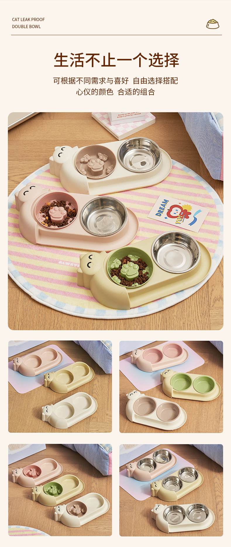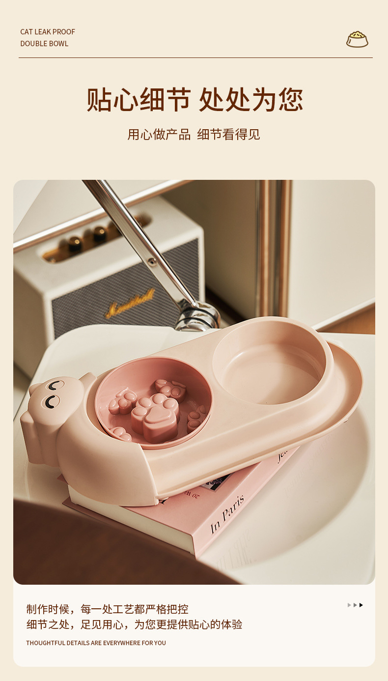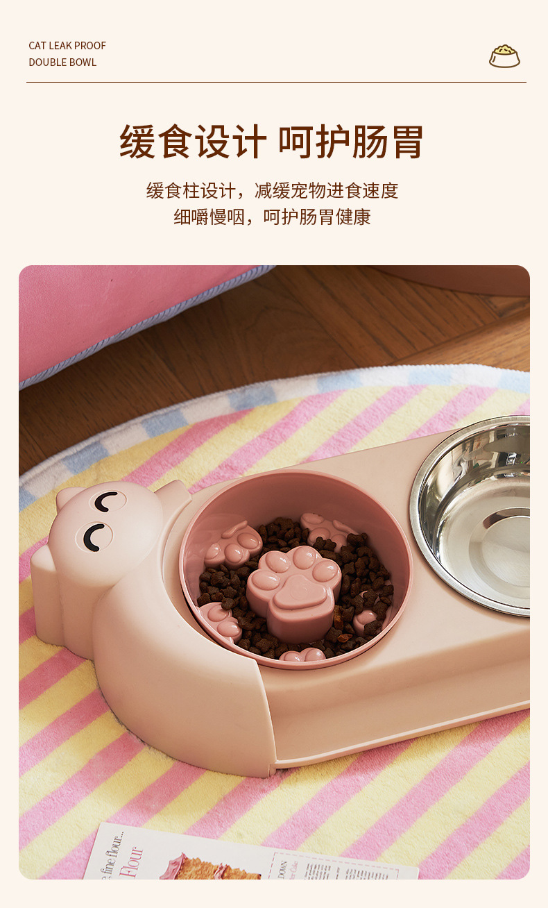• [새끼 고양이 이중 그릇 + 슬로우 푸드 그릇] 핑크