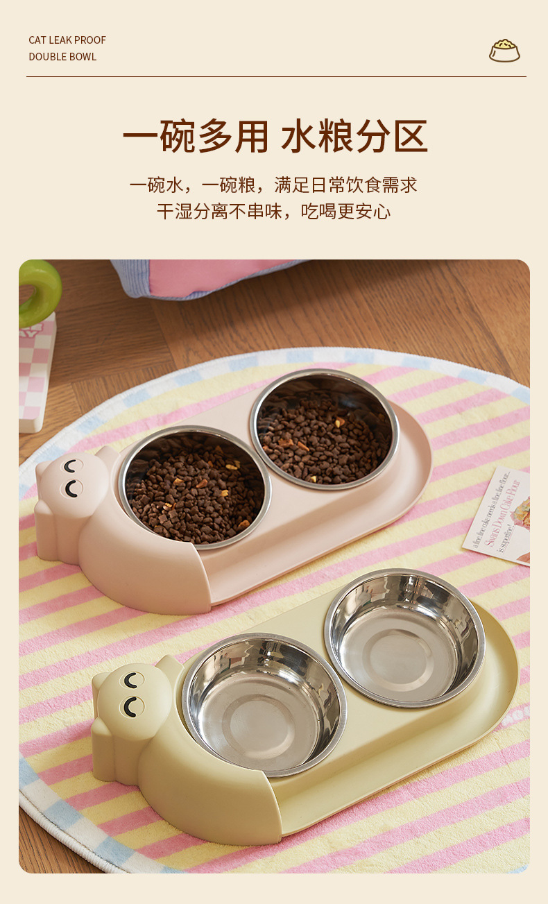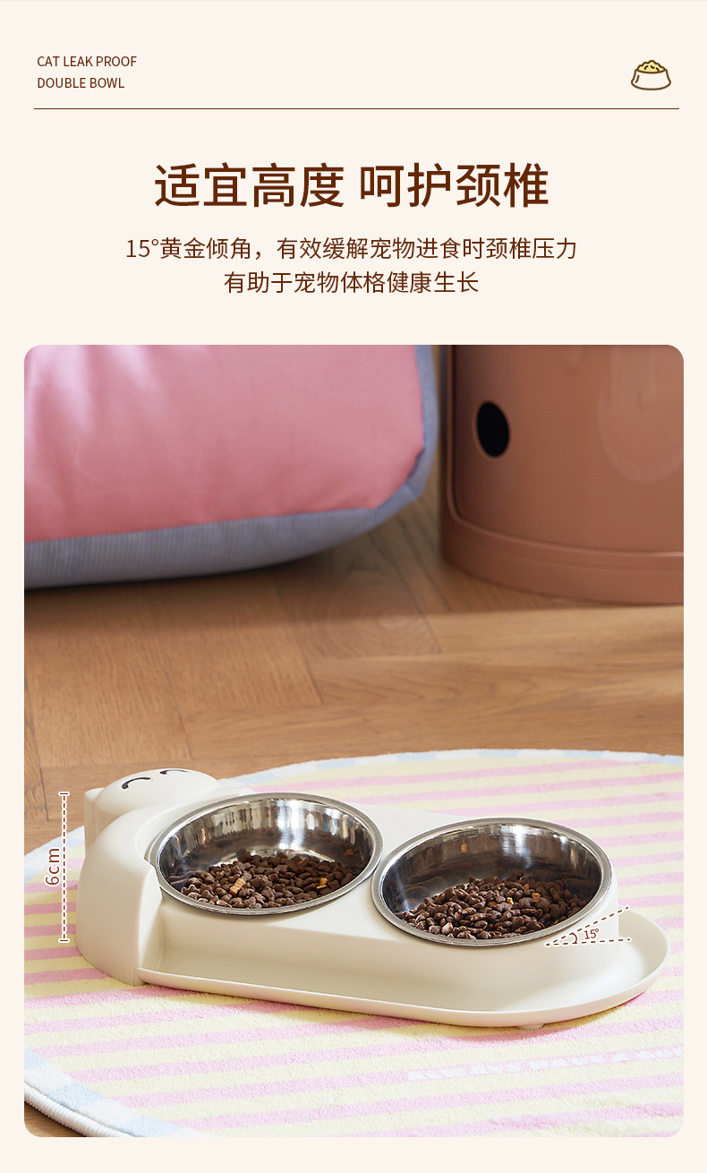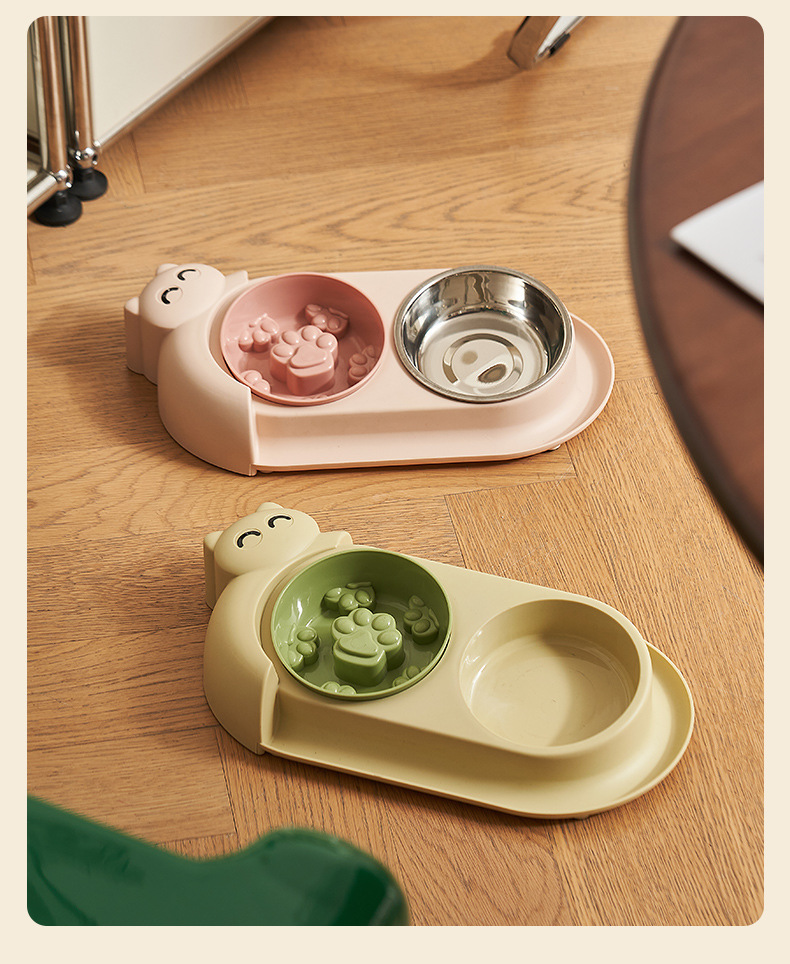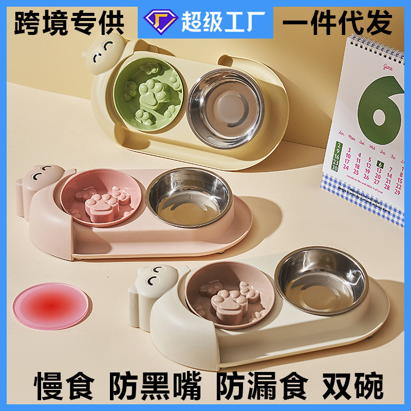 새로운 애완 동물 그릇 개 스테인레스 스틸 더블 보울 안티 노크 고양이 그릇 천천히 먹는 그릇 개 15 ° 목 보호 고양이 그릇 도매