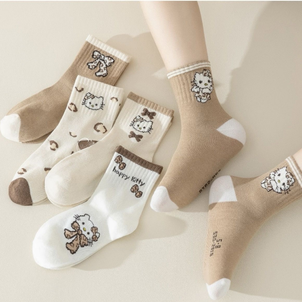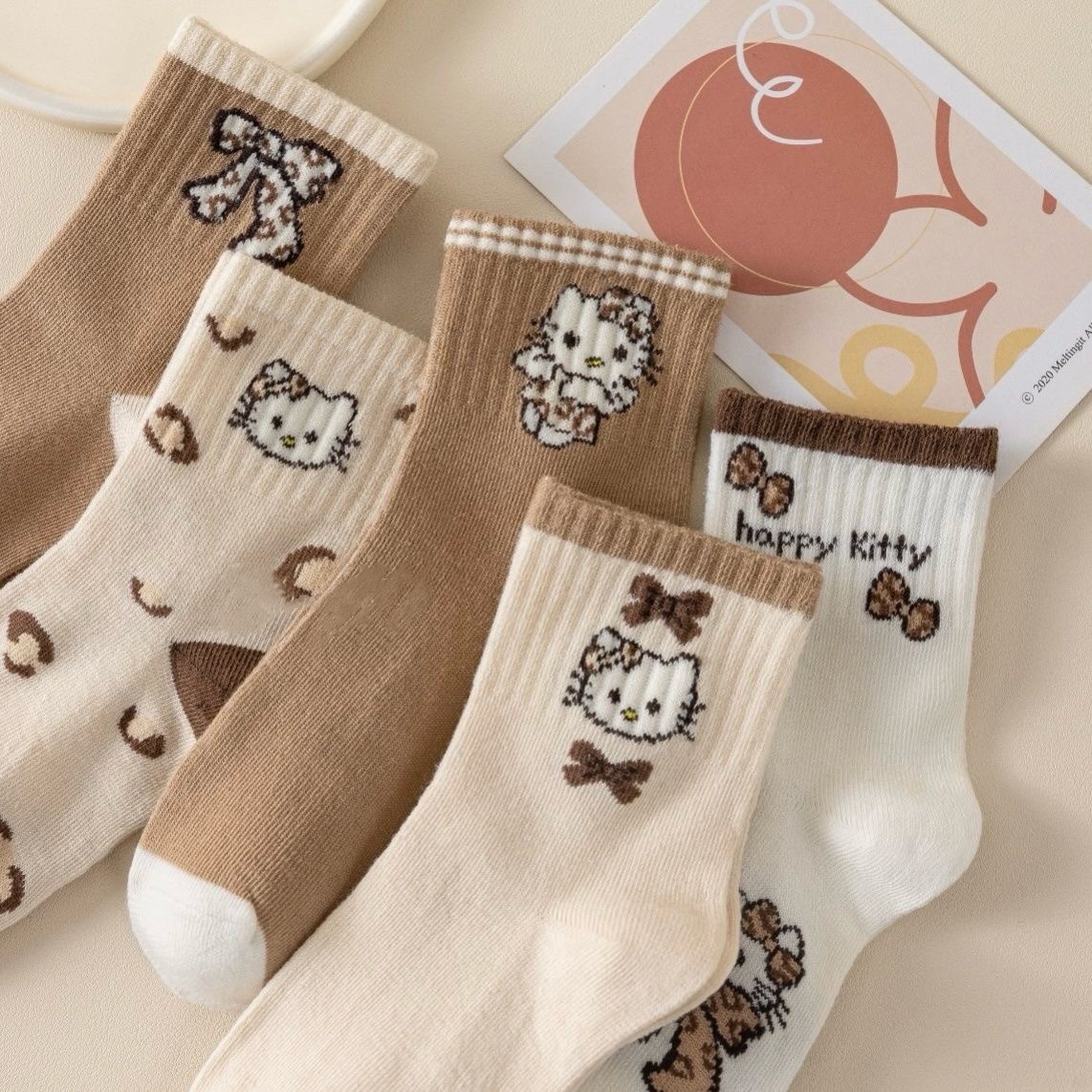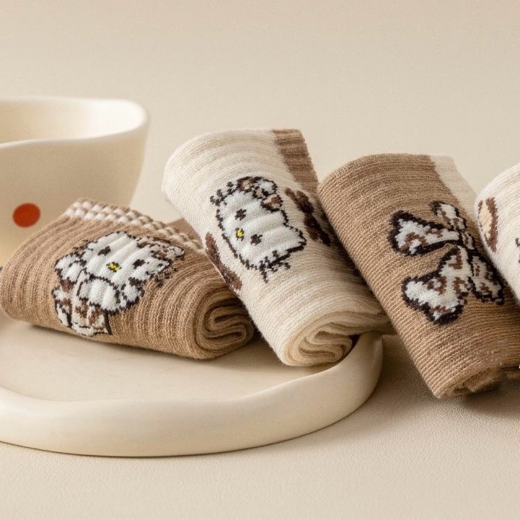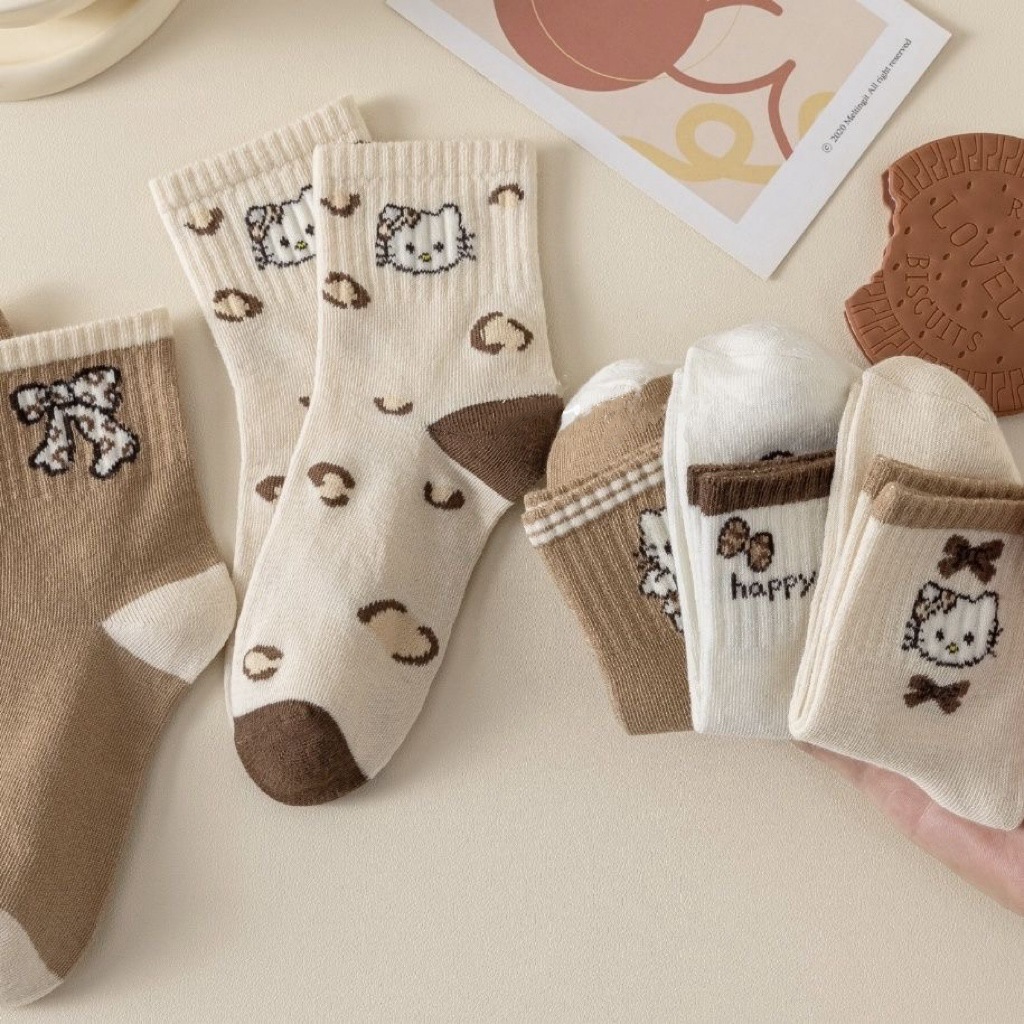 봄과 여름 새로운 도착 활 귀여운 양말 여성 헬로 키티 양말 편안한 통기성 다크 브라운 고양이 양말