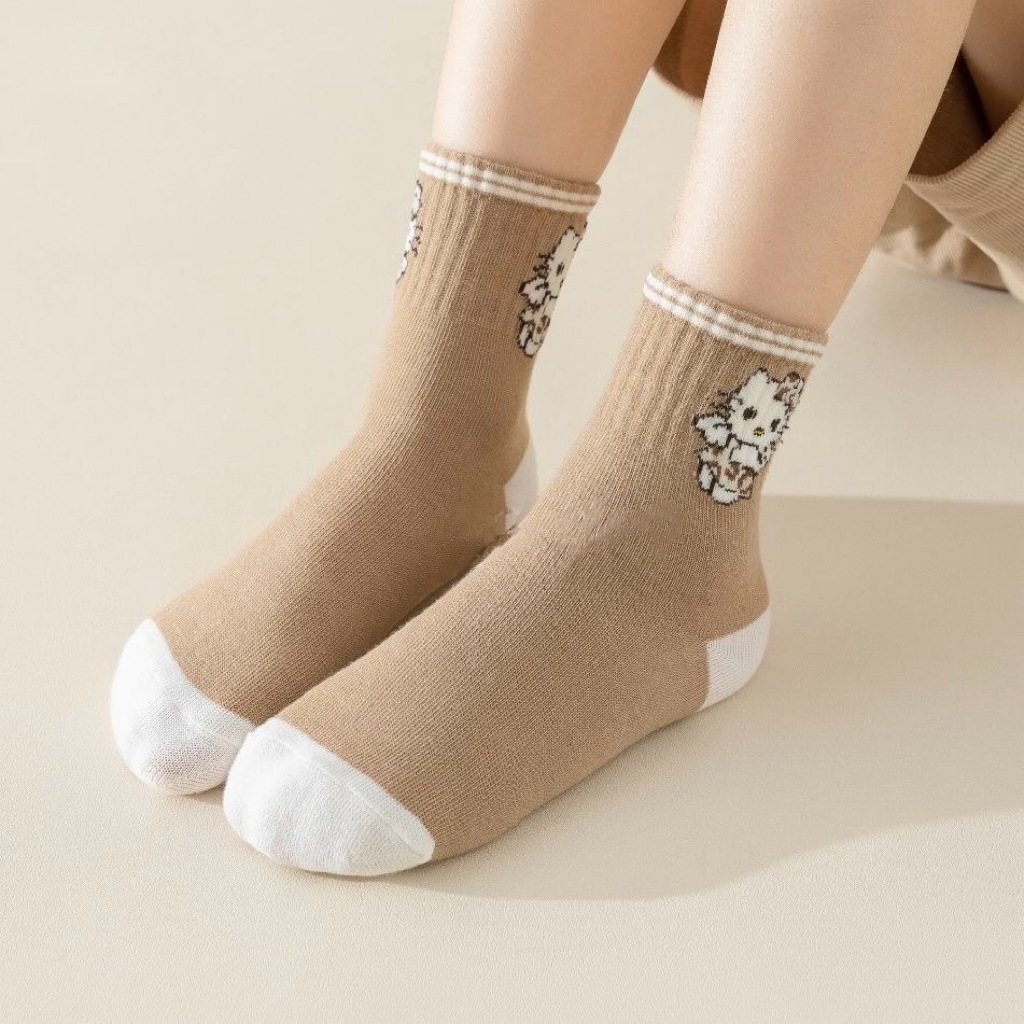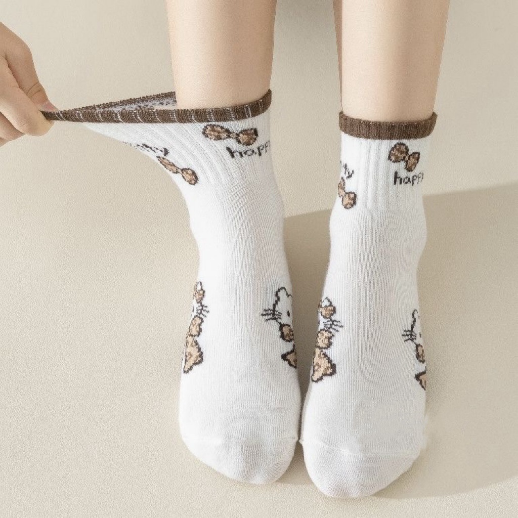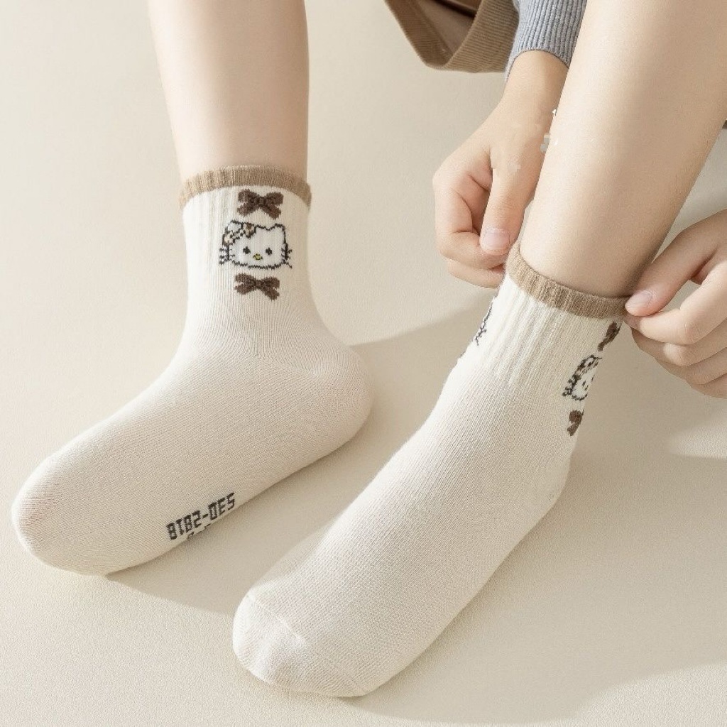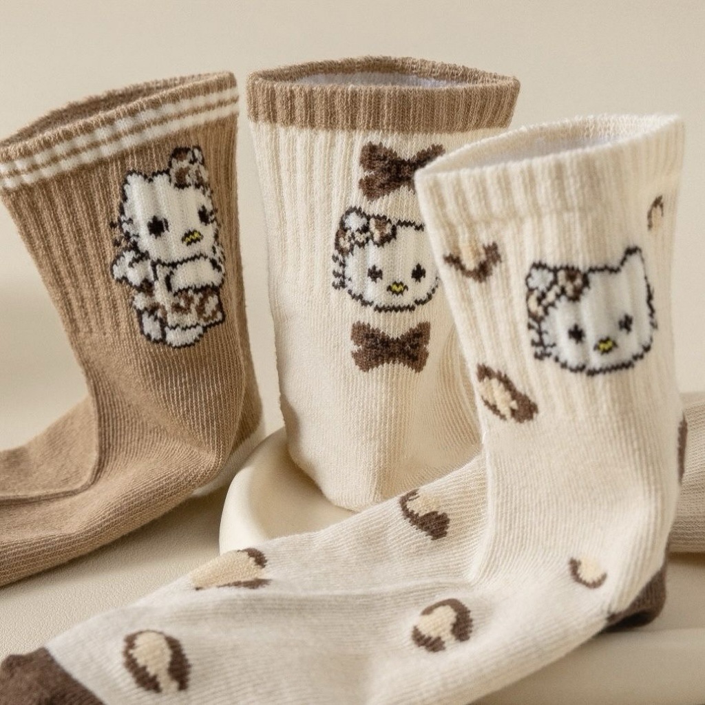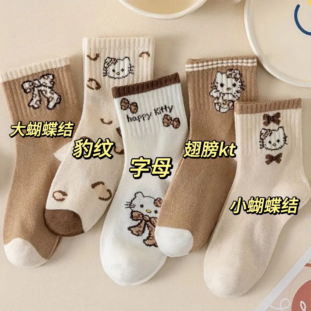 봄과 여름 새로운 도착 활 귀여운 양말 여성 헬로 키티 양말 편안한 통기성 다크 브라운 고양이 양말