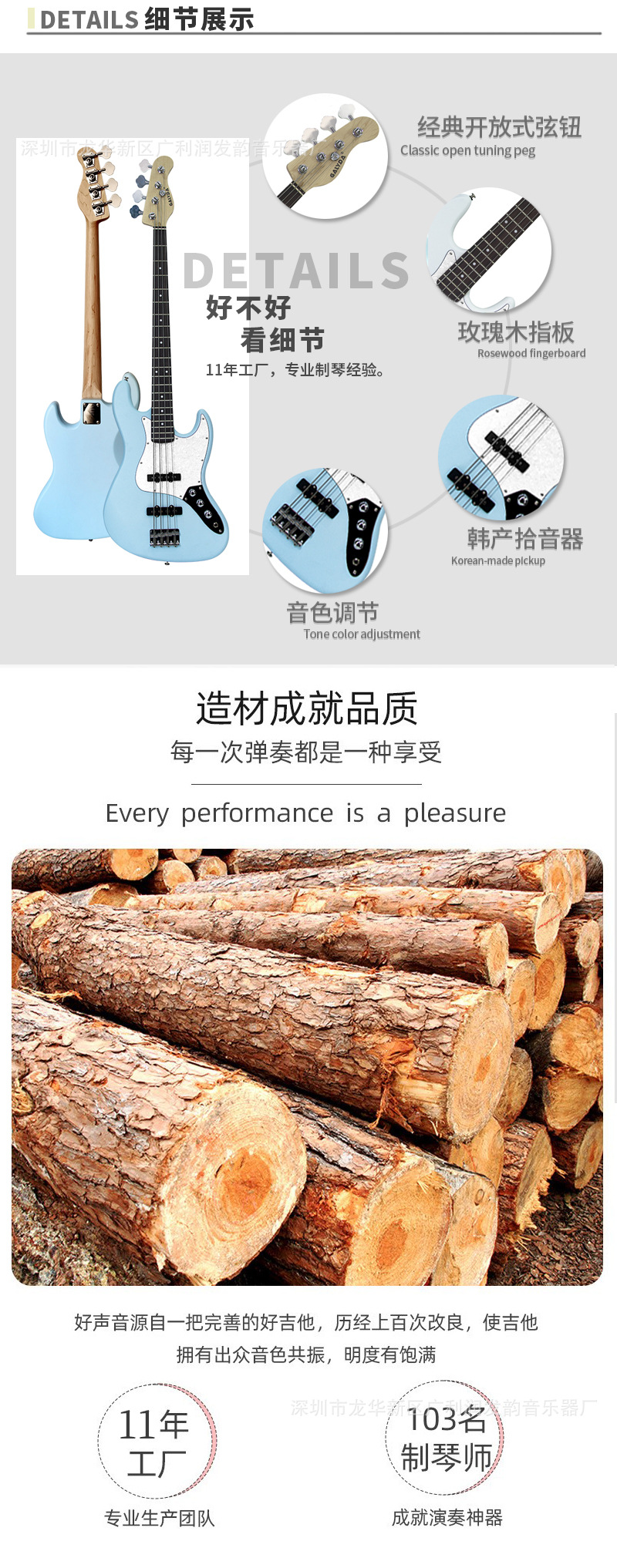 성인 베이스 복숭아 코어 포플러 무광택 전자 베이스 악기 도매 초보자 보급형 고가치 목재 베이스스토어 가기