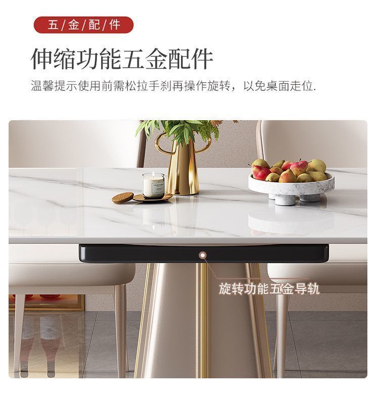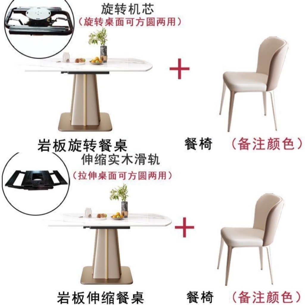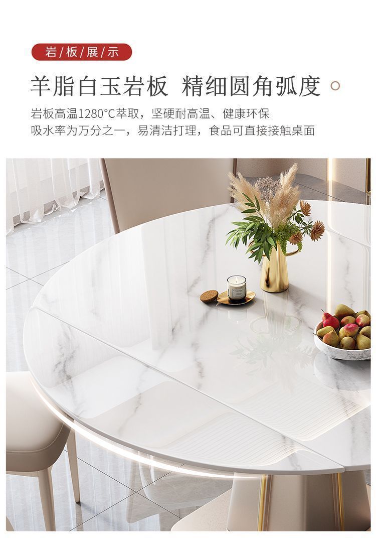 가벼운 고급 암판 식탁 및 의자 조합 간단한 작은 아파트 식탁 가구 회전 및 개폐식 광장 및 둥근 이중 목적 테이블 및 의자
