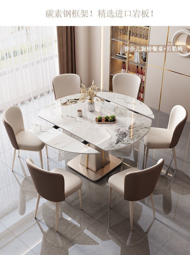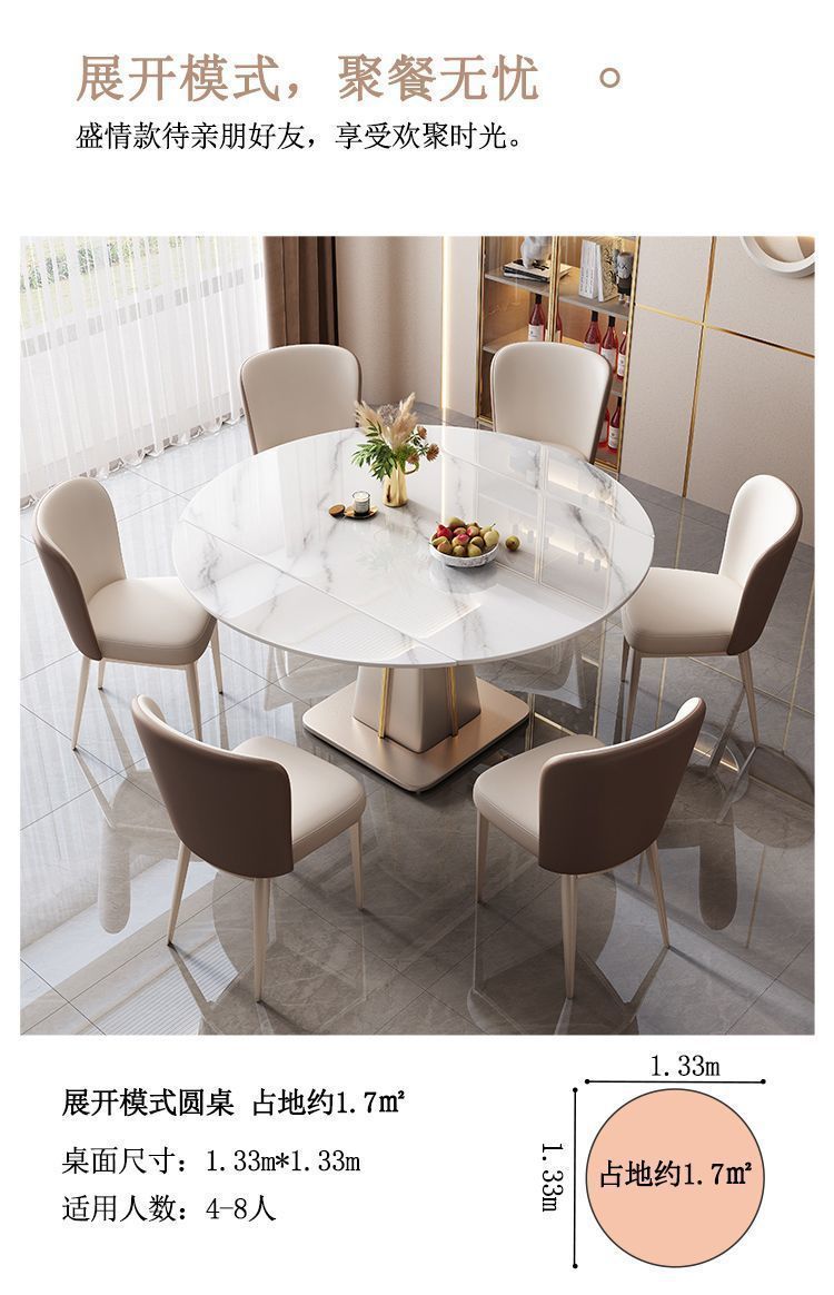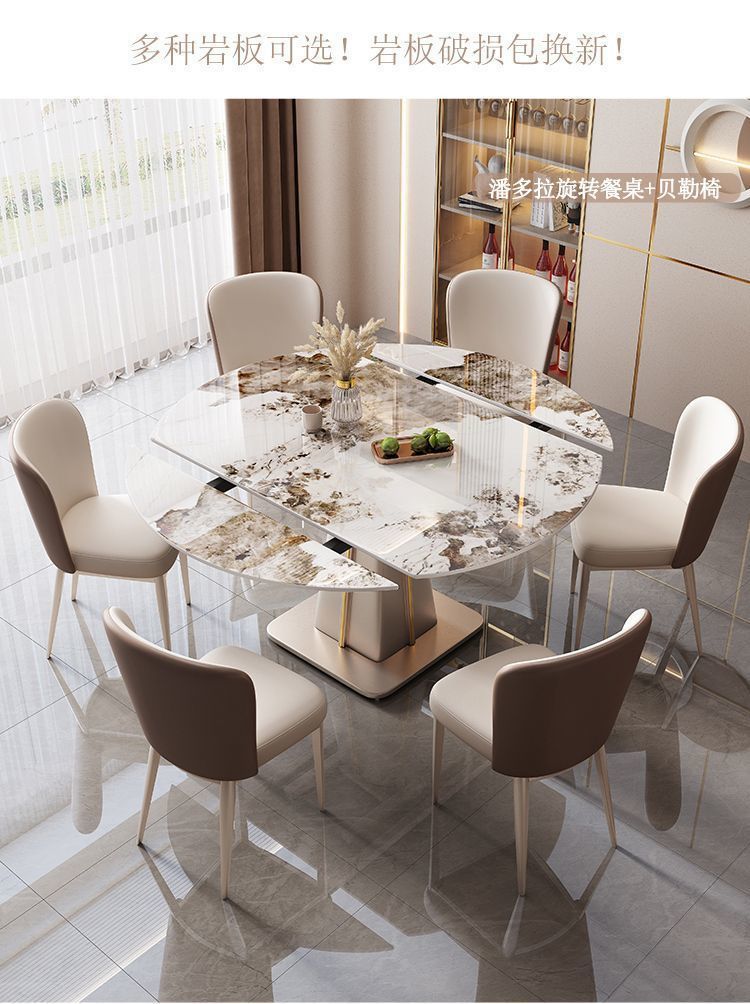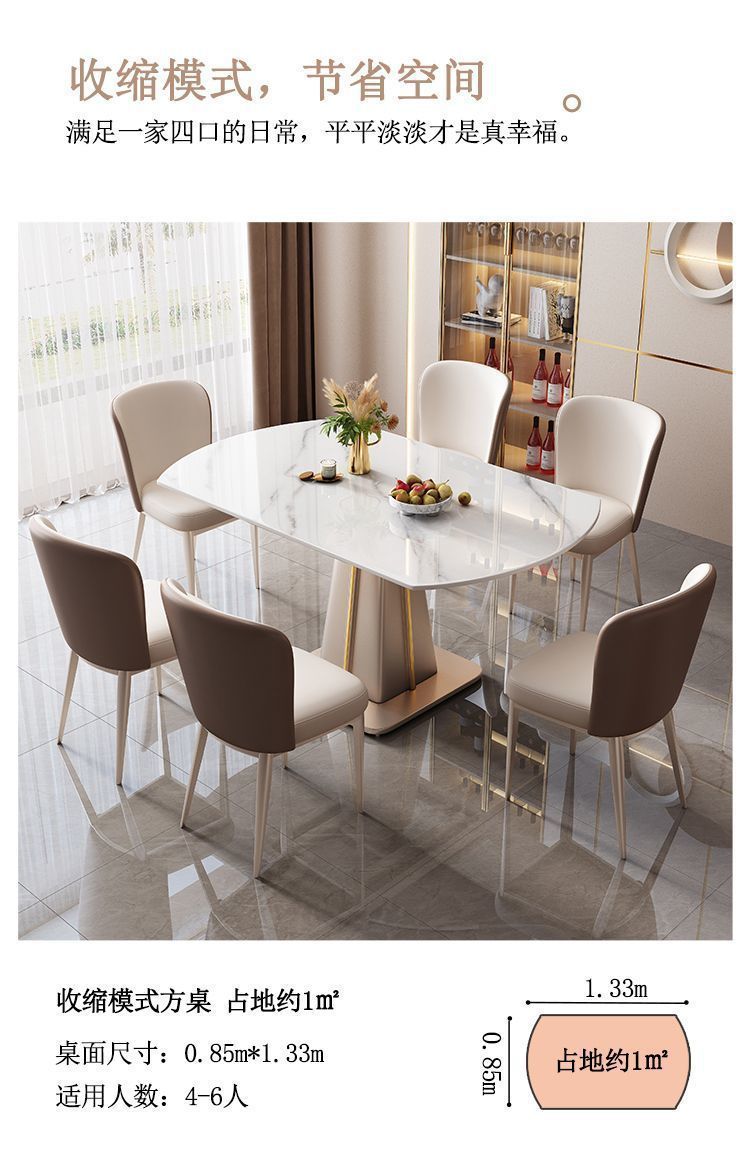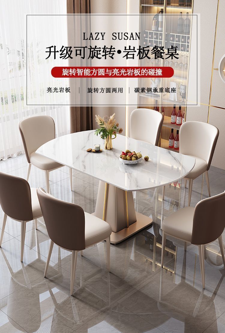 가벼운 고급 암판 식탁 및 의자 조합 간단한 작은 아파트 식탁 가구 회전 및 개폐식 광장 및 둥근 이중 목적 테이블 및 의자스토어 가기