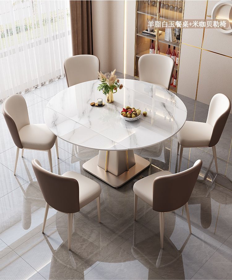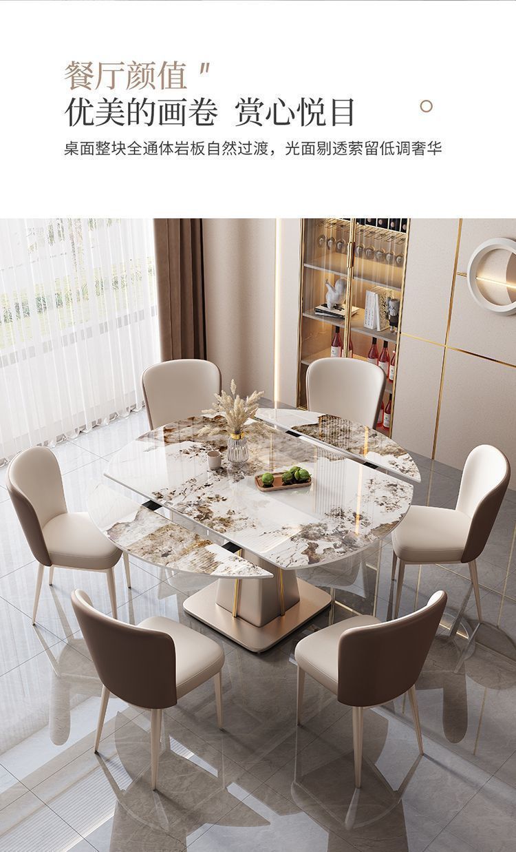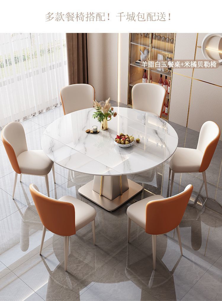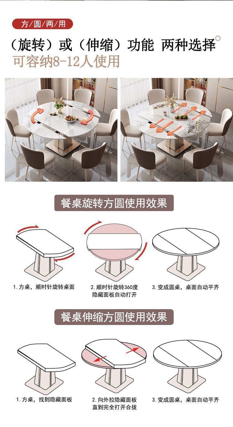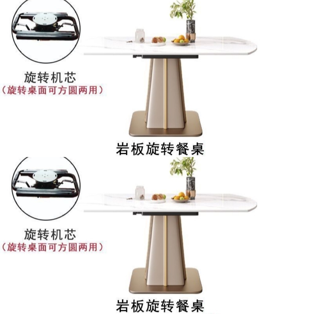 가벼운 고급 암판 식탁 및 의자 조합 간단한 작은 아파트 식탁 가구 회전 및 개폐식 광장 및 둥근 이중 목적 테이블 및 의자스토어 가기
