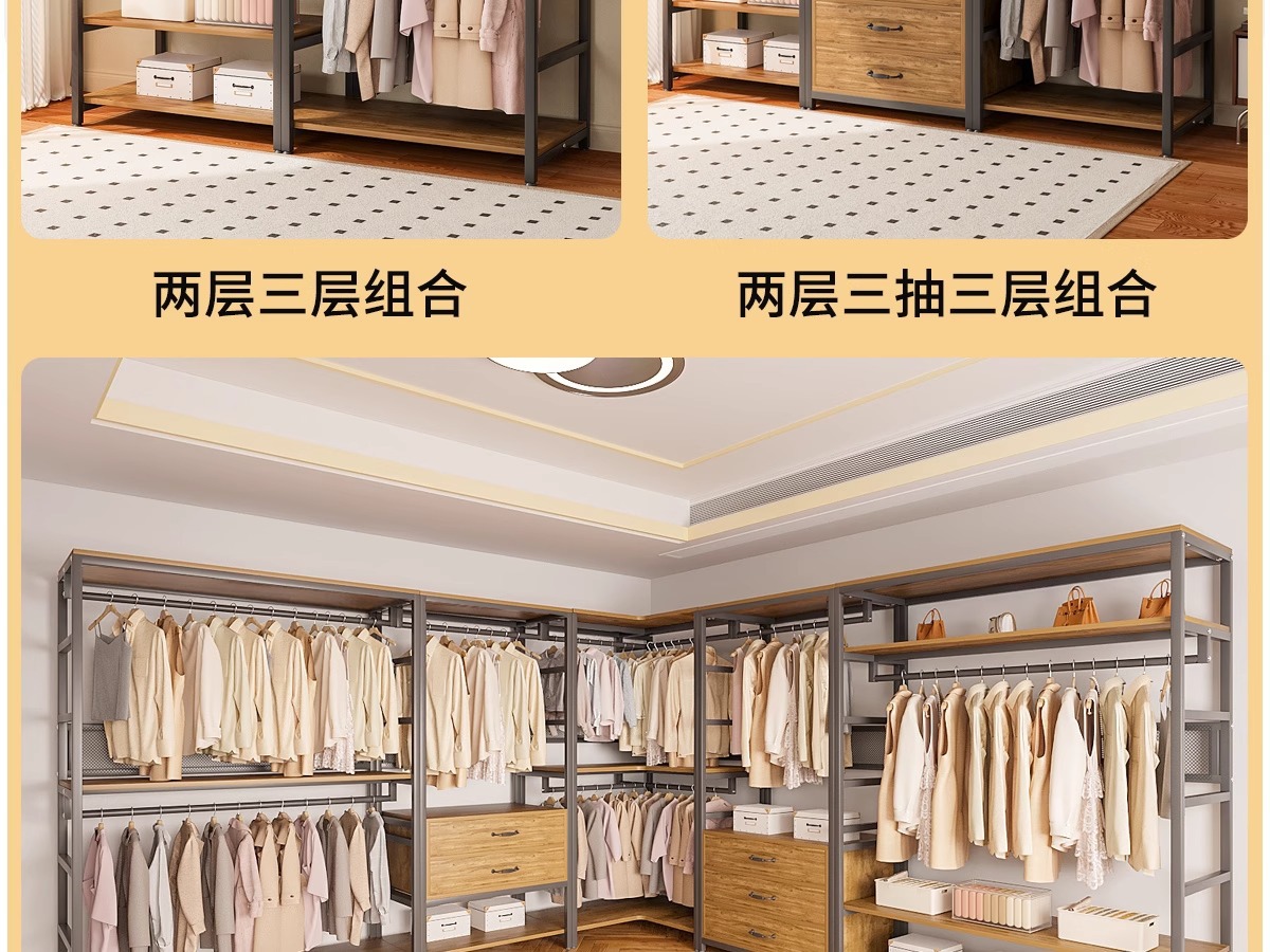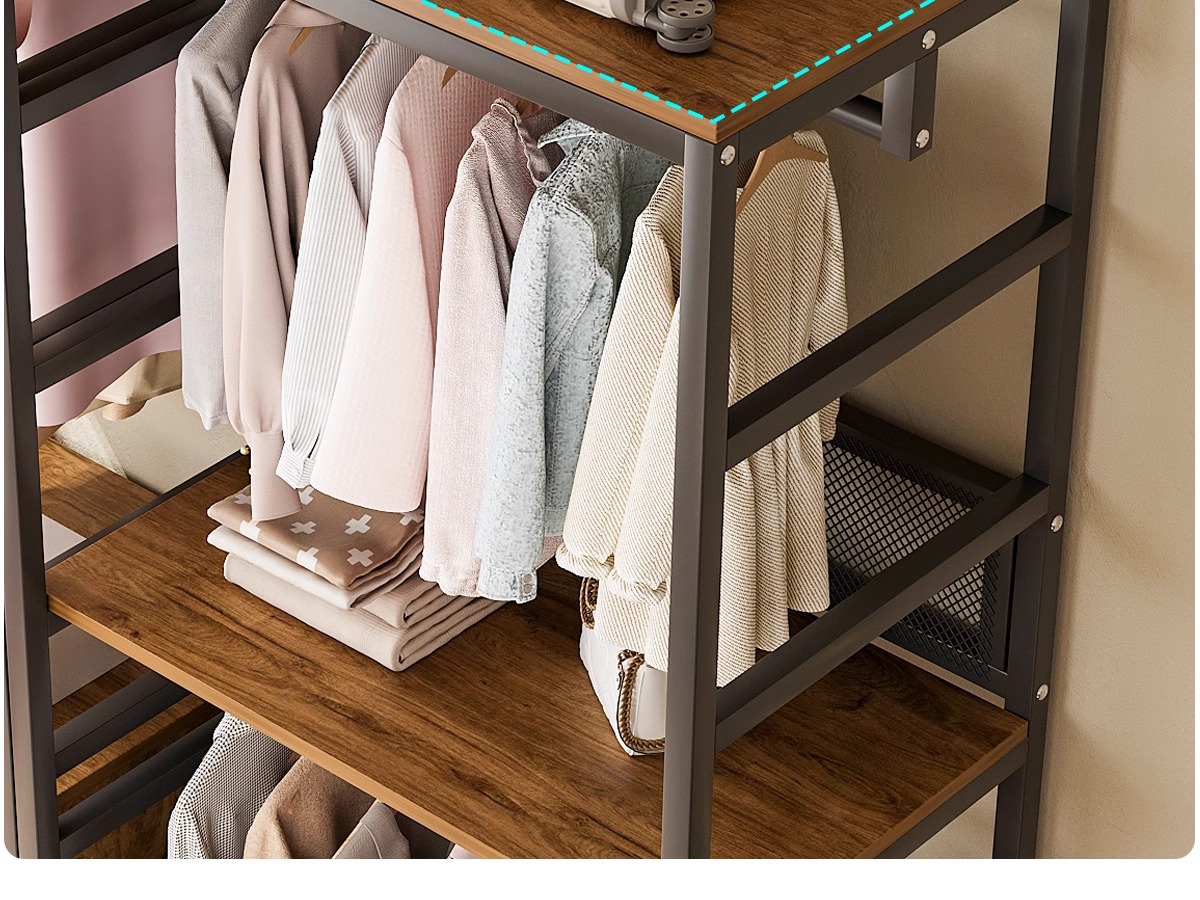 코너 옷장 홈 침실 간단한 조립 전체 강철 프레임 옷장 옷장 구멍 보드 캐비닛 조합 교수형 옷장