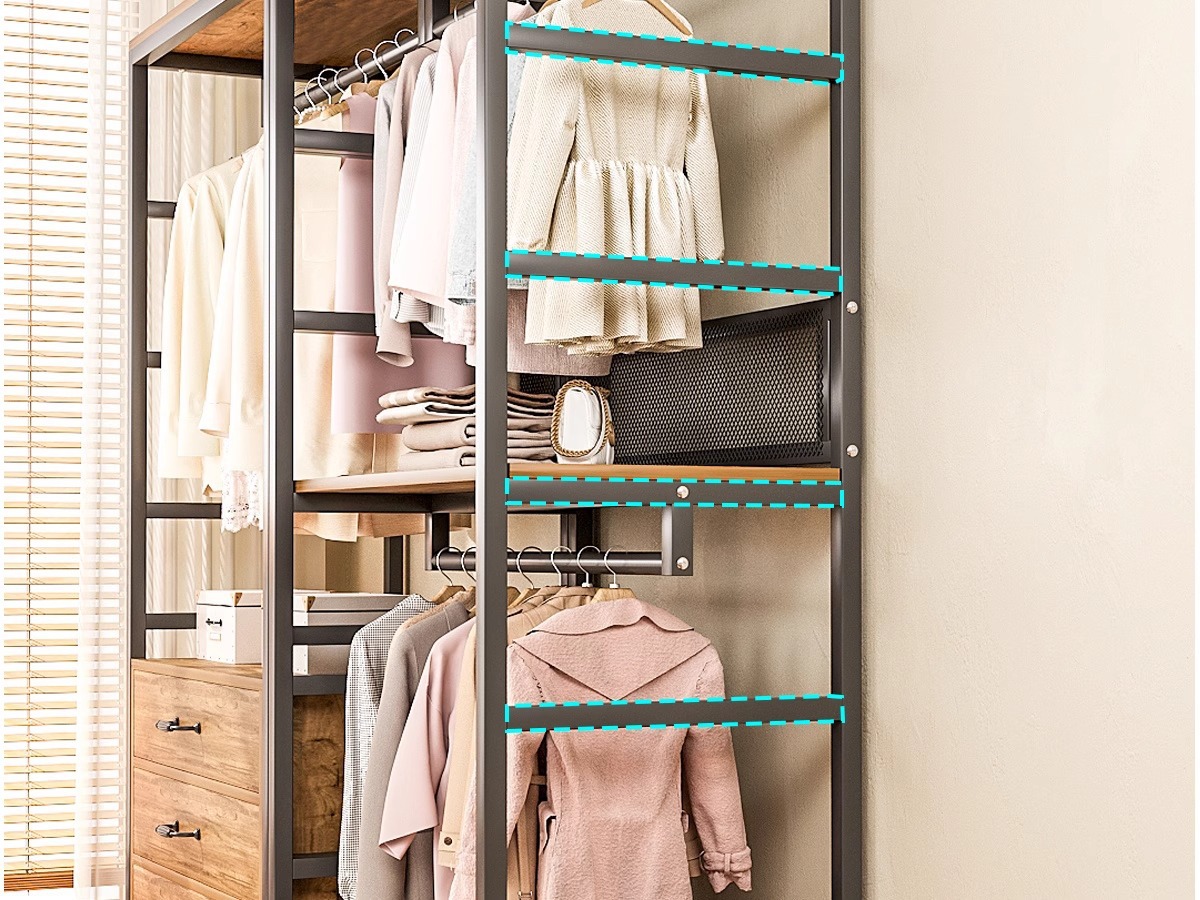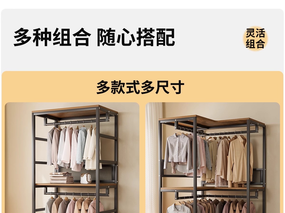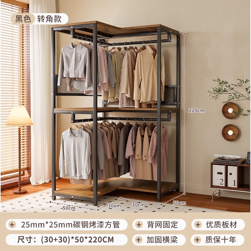 코너 옷장 홈 침실 간단한 조립 전체 강철 프레임 옷장 옷장 구멍 보드 캐비닛 조합 교수형 옷장스토어 가기
