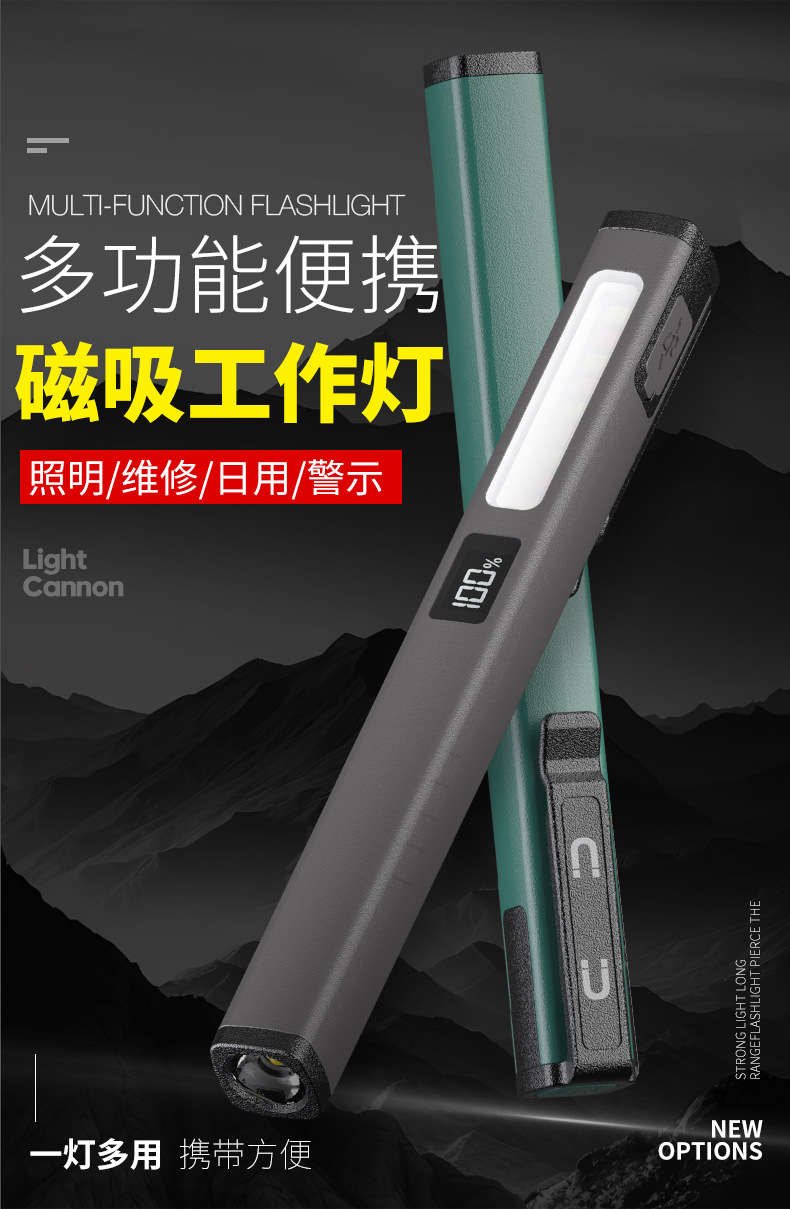 국경 다기능 작업 램프 COB 펜 클립 램프 TYPEC 충전식 자동 수리 작업 램프 강한 자기 흡착 손전등스토어 가기