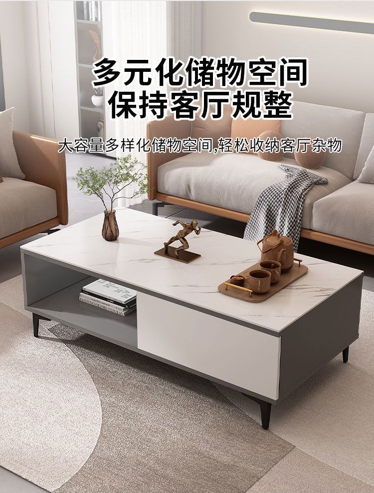 커피 테이블 거실 홈 2024 새로운 스타일의 가벼운 럭셔리 작은 아파트 직사각형 수납 공간이 있는 고급 단단한 커피 테이블 테이블