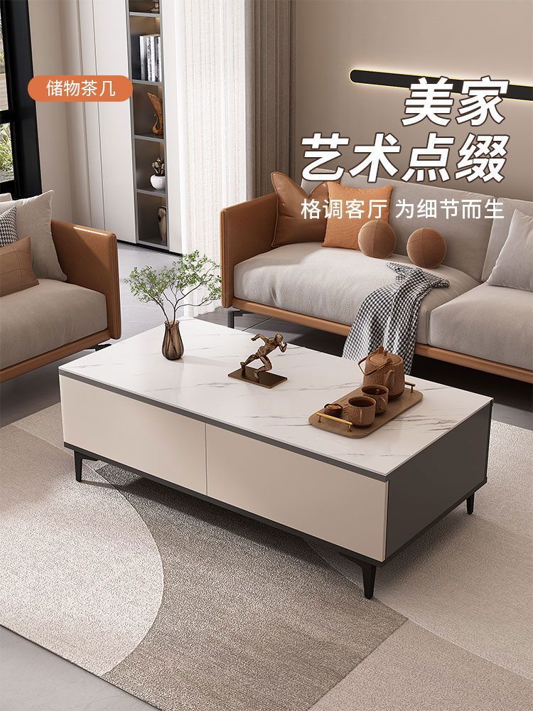 커피 테이블 거실 홈 2024 새로운 스타일의 가벼운 럭셔리 작은 아파트 직사각형 수납 공간이 있는 고급 단단한 커피 테이블 테이블스토어 가기