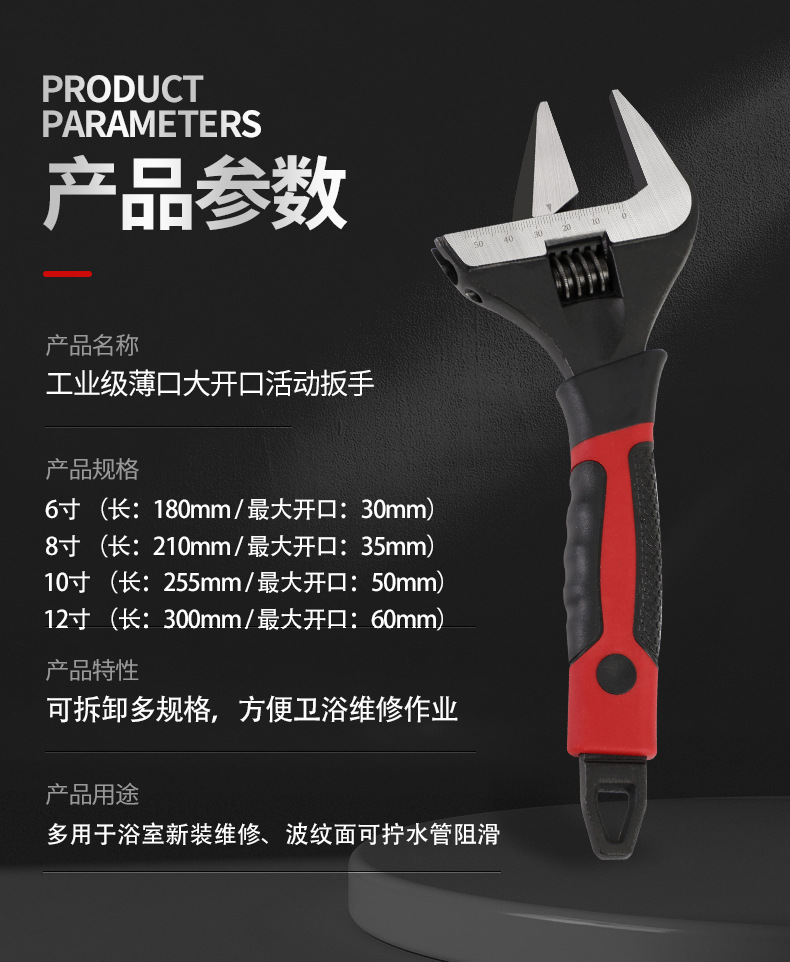 • 산업용 등급 얇은 입 대형 개방 조절 렌치 6inch