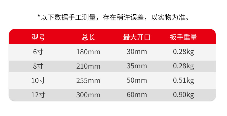 • 산업용 등급 얇은 입 대형 개방 조절 렌치 12inch