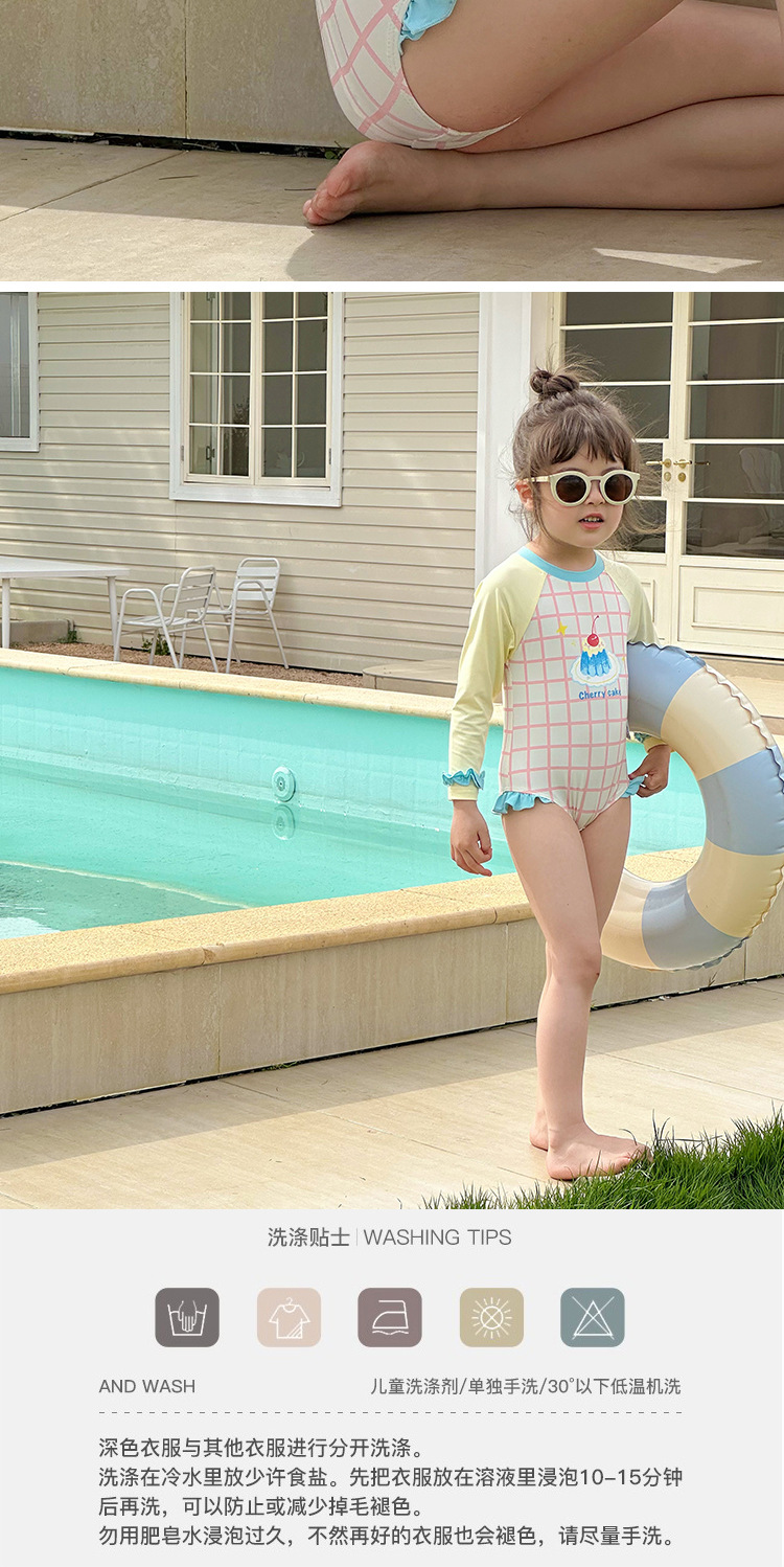2025 여름 새 여아 긴팔 선 스크린 수영복 스위트 케이크 비치 온천 휴가 빠른 건조 수영복스토어 가기