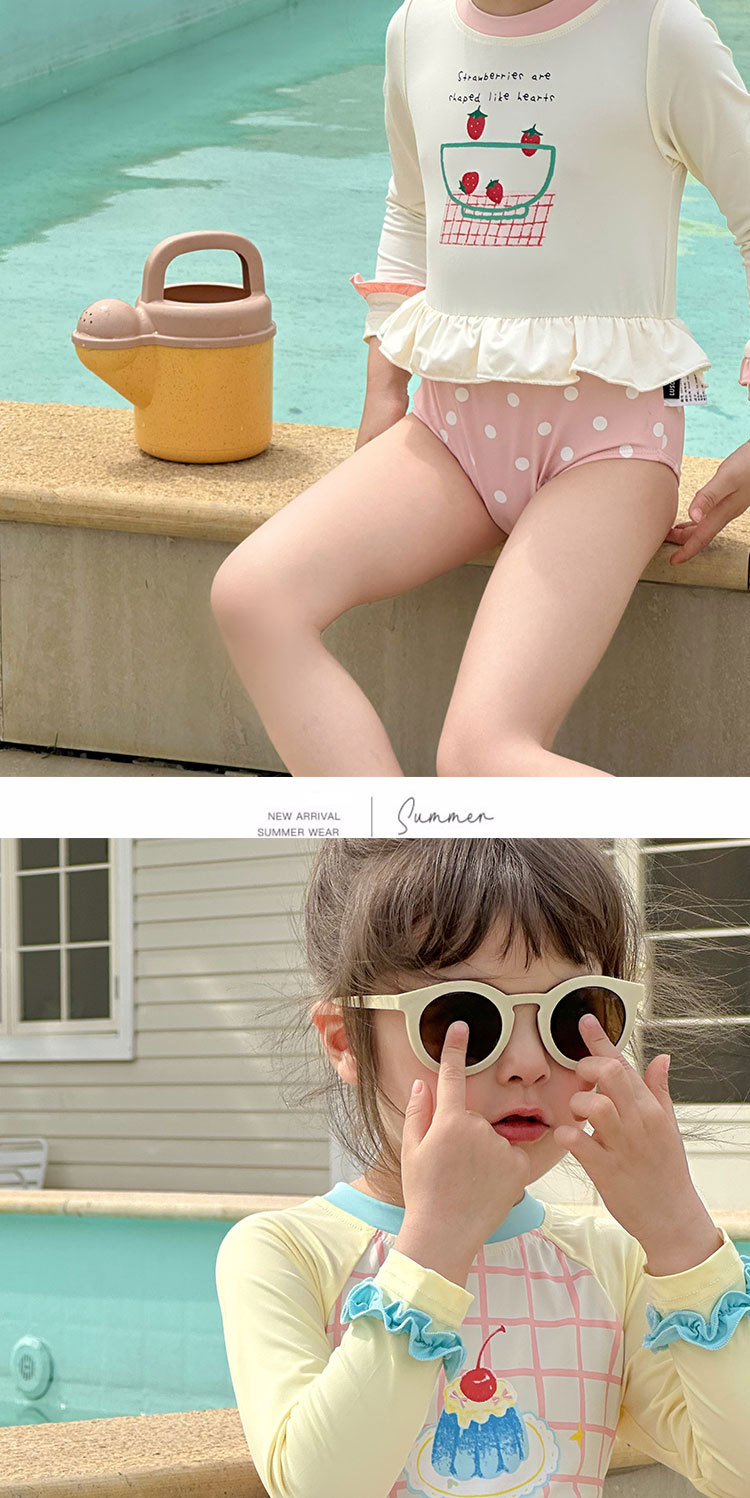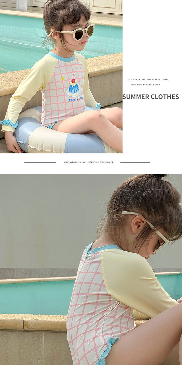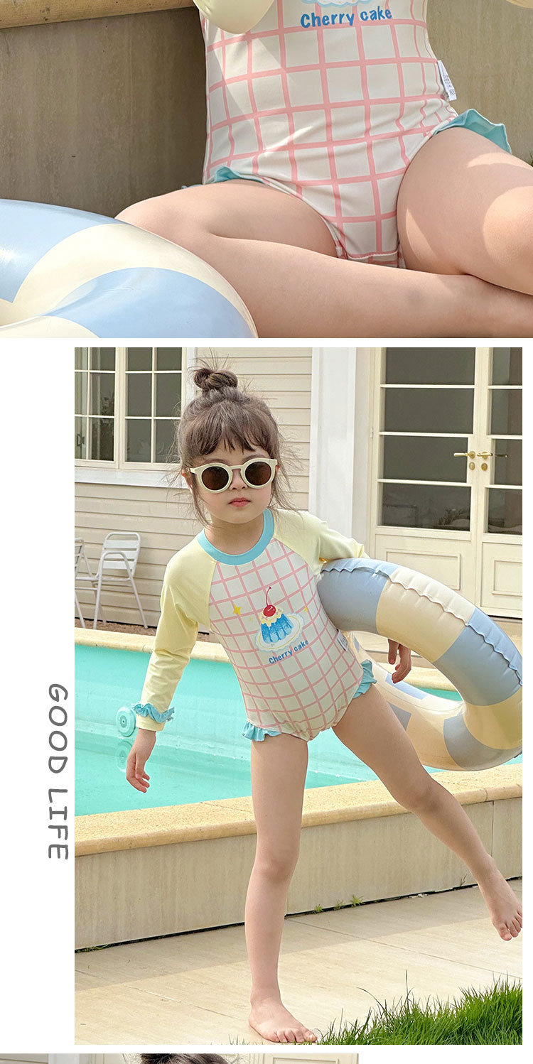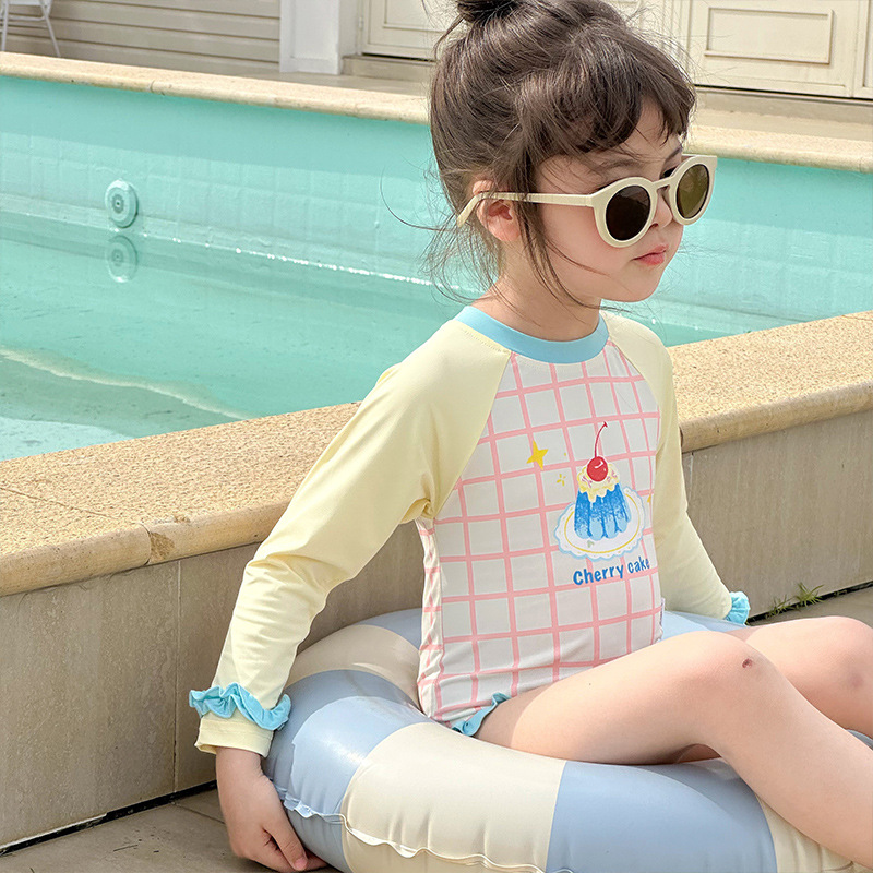 2025 여름 새 여아 긴팔 선 스크린 수영복 스위트 케이크 비치 온천 휴가 빠른 건조 수영복
