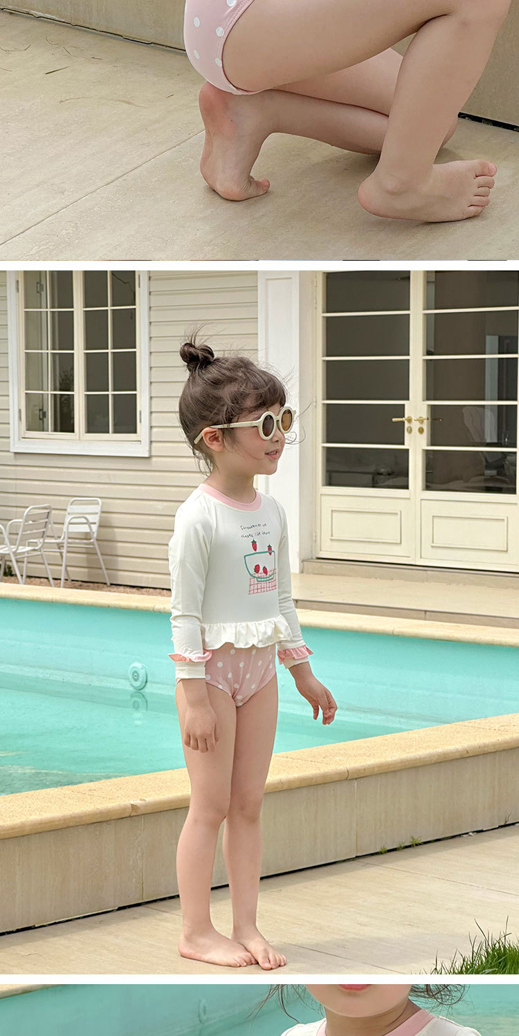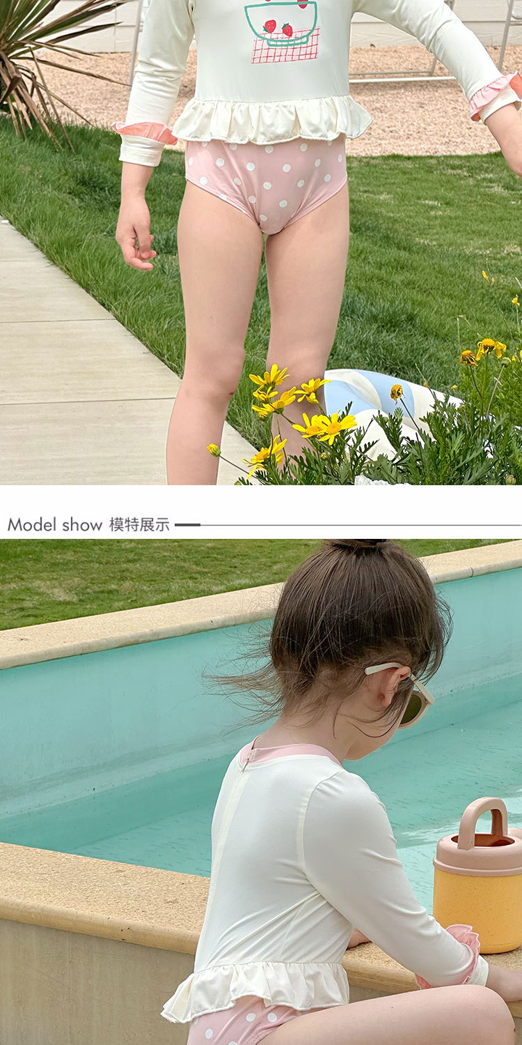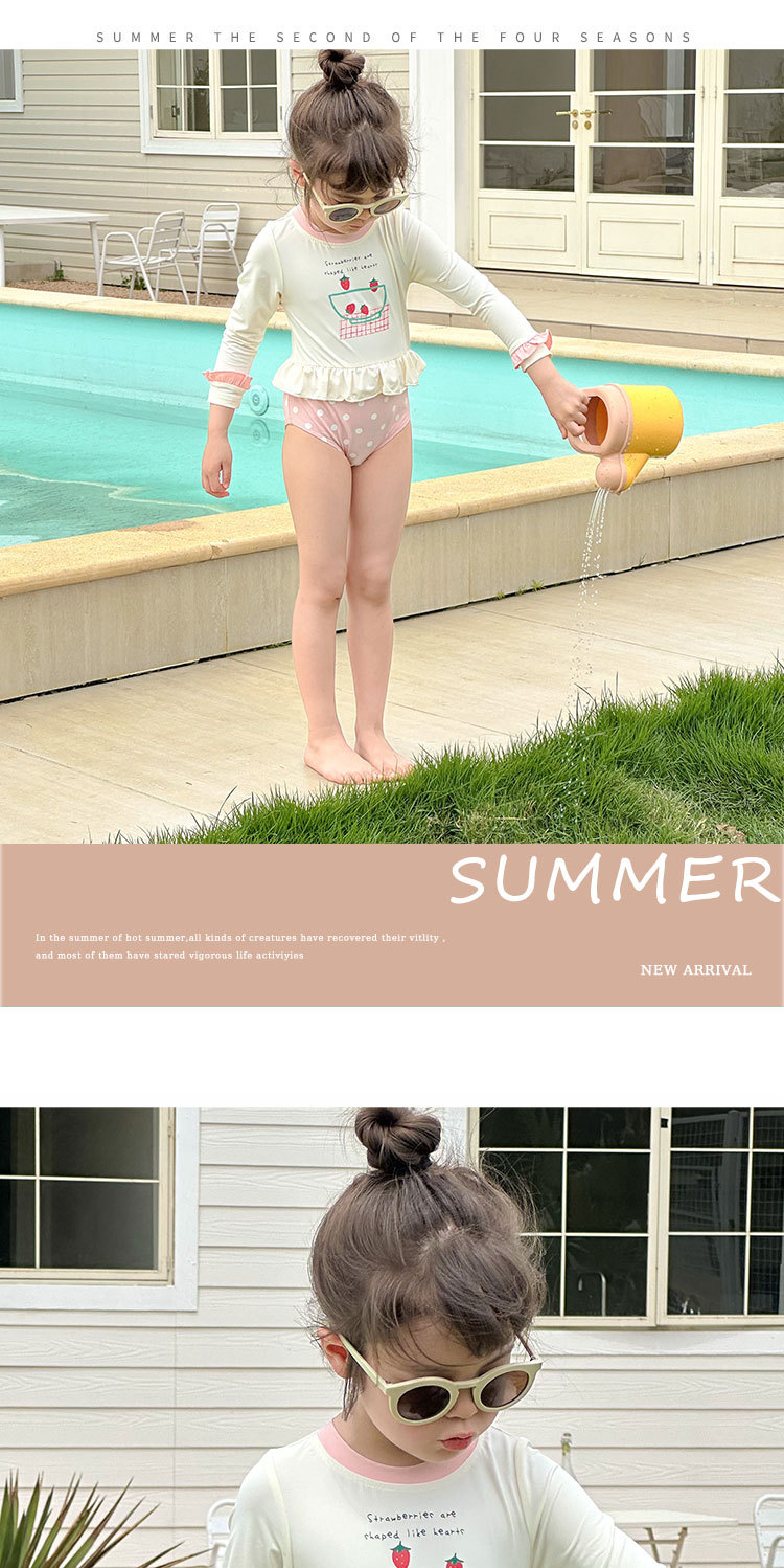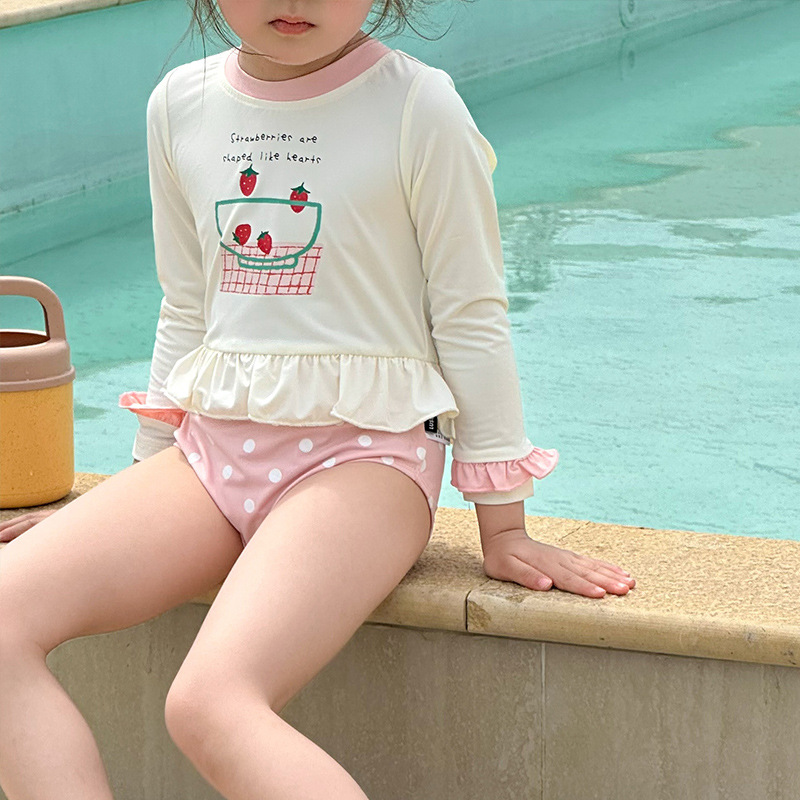 2025 여름 새 여아 긴팔 선 스크린 수영복 스위트 케이크 비치 온천 휴가 빠른 건조 수영복