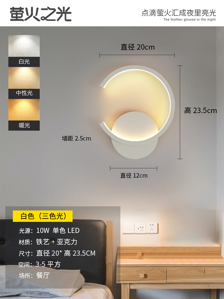 • 둥근 흰색 뿔-LED 벽 램프 3색 조명 깜박임 없음-2022 새로운 스타일⚑☆