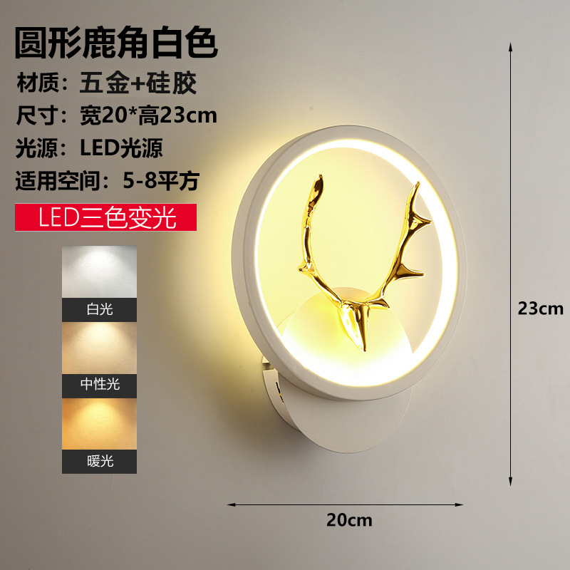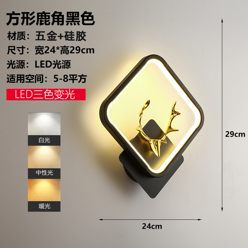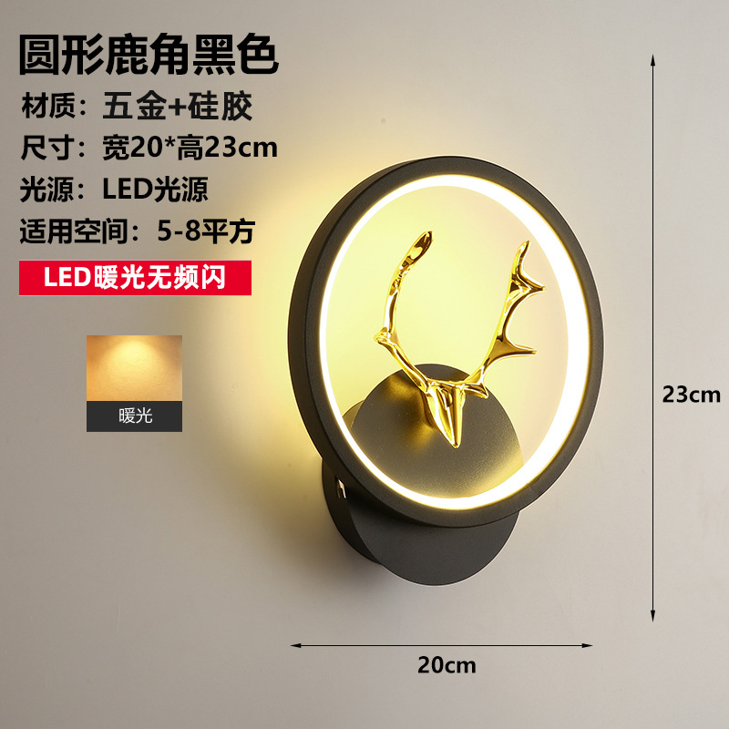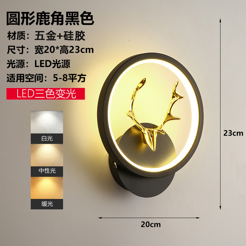 • 둥근 검은색 사슴뿔 LED 벽등 삼색 조명, 깜빡임 없음 - 2022년 신제품⚑☆