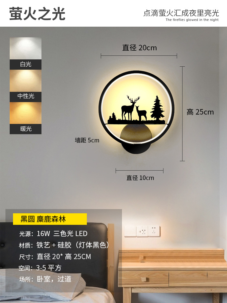 • 카툰 사슴 벽등 삼색 변환 조명 장식품 포함⚑☆