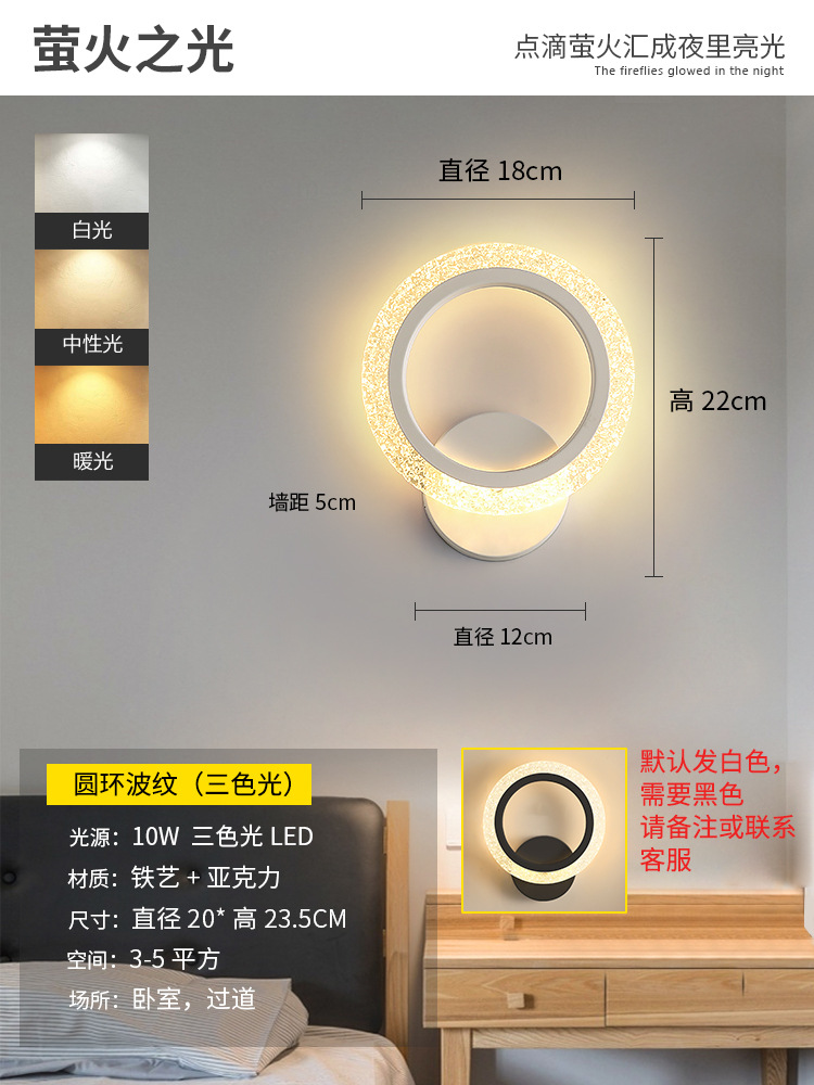 • 원형 블랙 LED 벽등 삼색 조명, 깜빡임 없음 - 2022년 신제품⚑☆