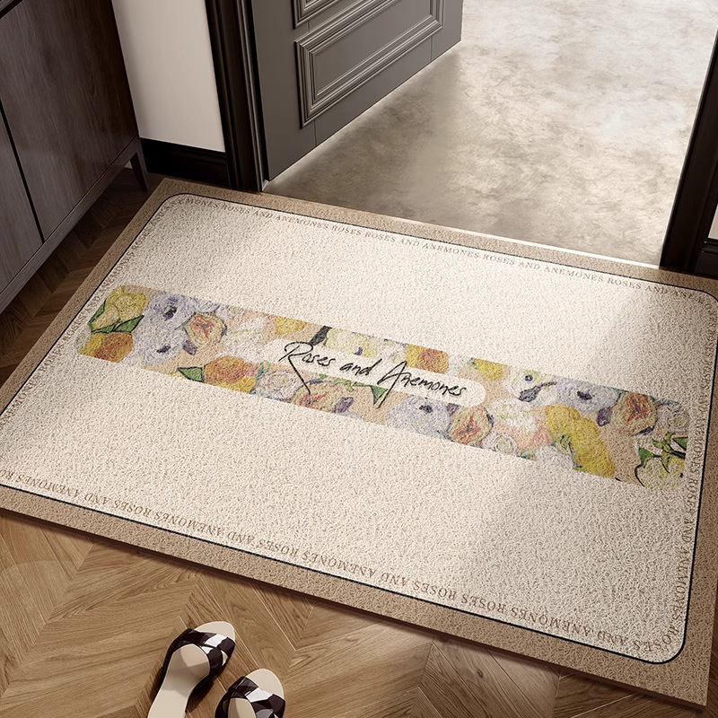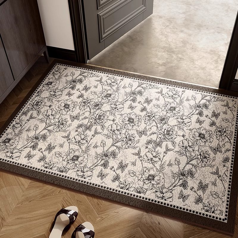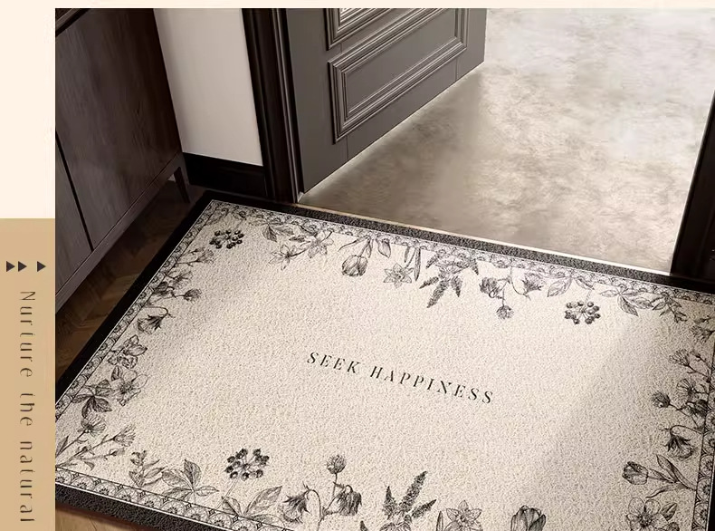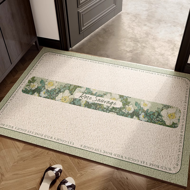 레트로 그린 홈 매트 먼지 제거 내마모성 실크 링 매트 먼지 방지 입구 미끄럼 방지 매트 머리카락을 관리하기 쉽습니다.