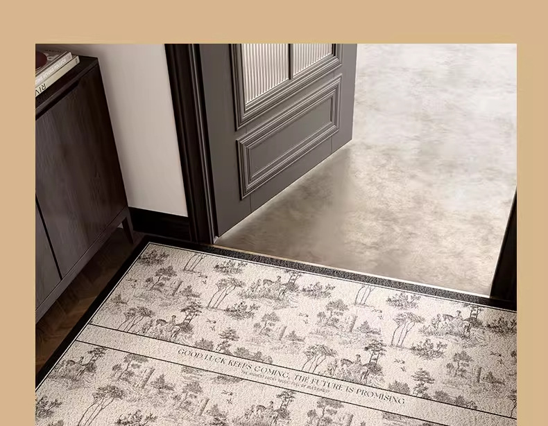 레트로 그린 홈 매트 먼지 제거 내마모성 실크 링 매트 먼지 방지 입구 미끄럼 방지 매트 머리카락을 관리하기 쉽습니다.스토어 가기