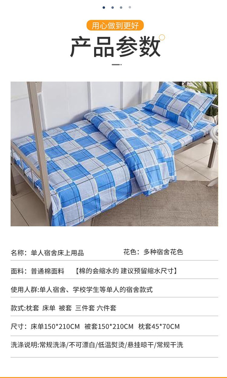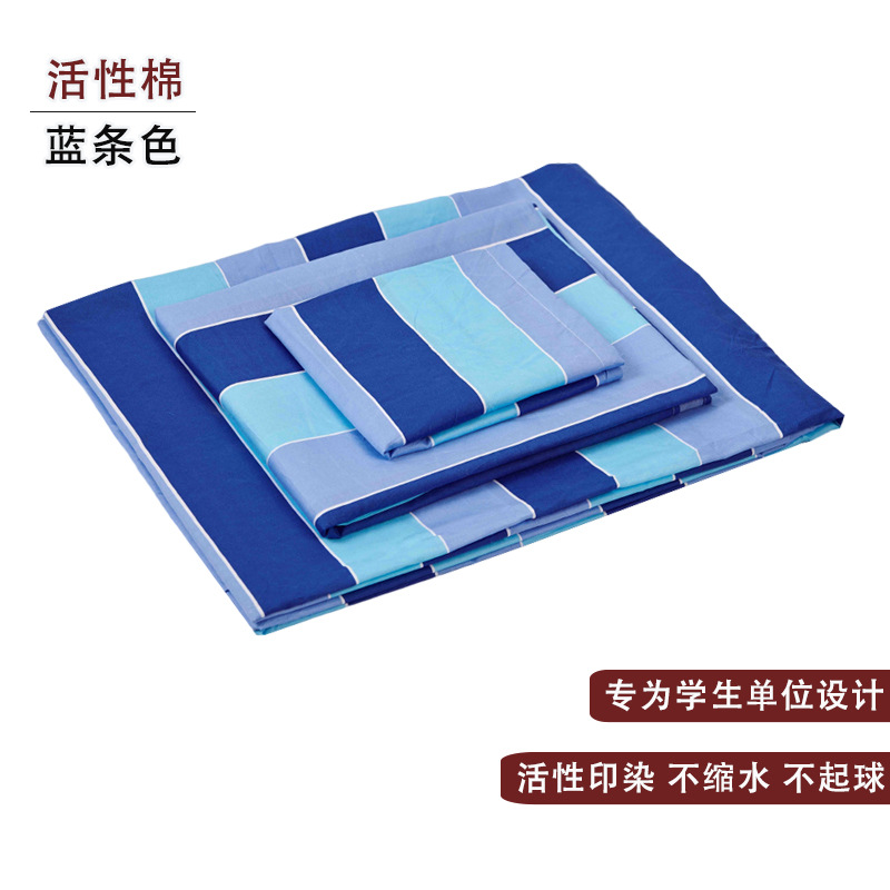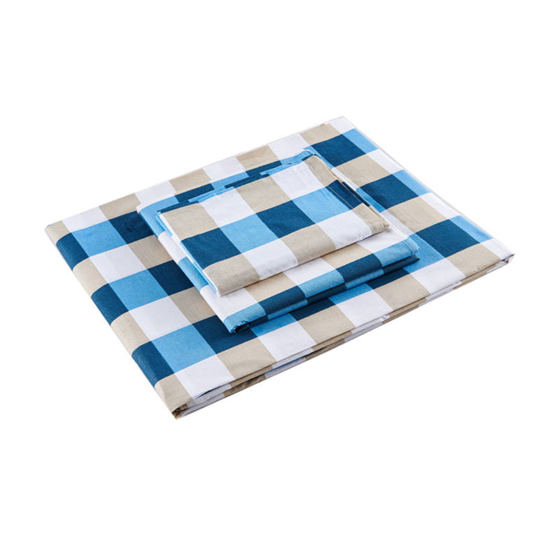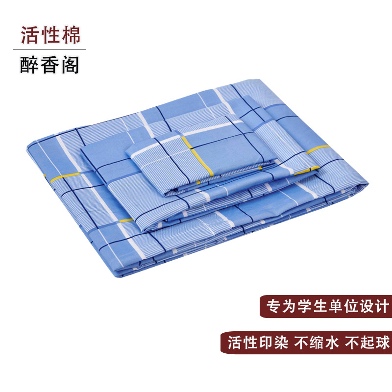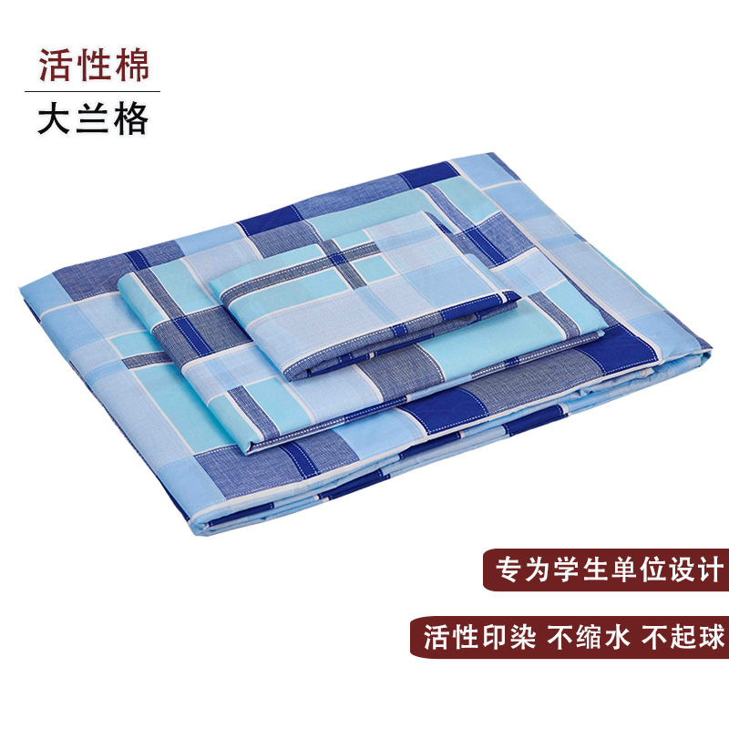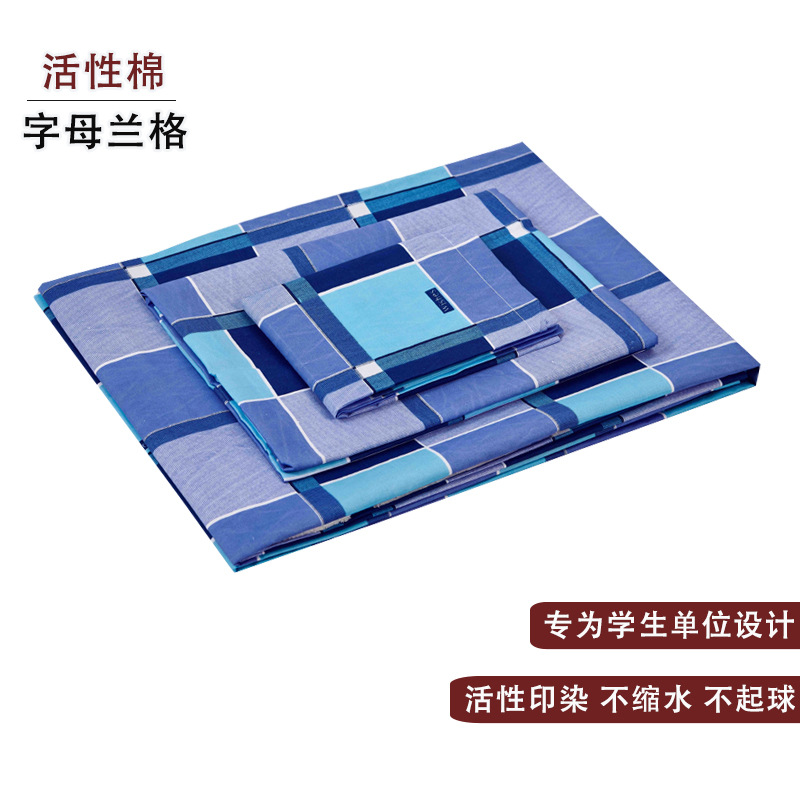 제조업체 도매 학생 기숙사 순면 3종 세트 학교 파란색 격자 무늬 침대 시트 이불 커버 군사 훈련 기숙사 3종 세트스토어 가기