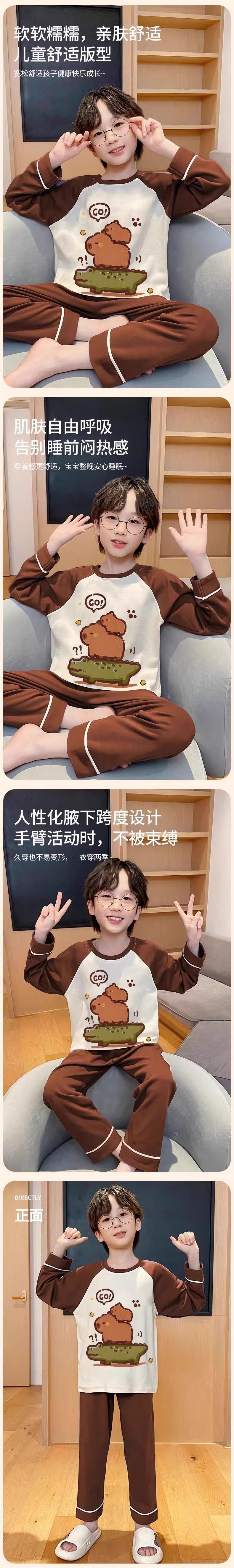 어린이 잠옷 순면 긴팔 바지 2025 봄, 가을 새로운 Nezha 소년 중대형 소년 홈웨어 세트