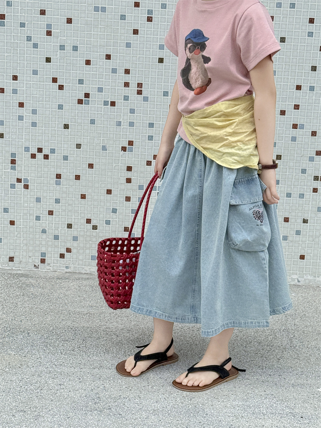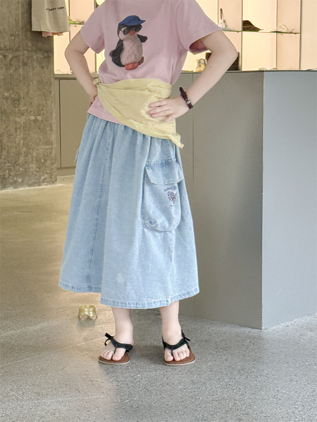 꽃꽂이 아동복 여자치마 2025 년 여름 새 도착 데님 A-라인 스커트 어린이 올매치 쇼트 스커트 트렌디한 아이들스토어 가기