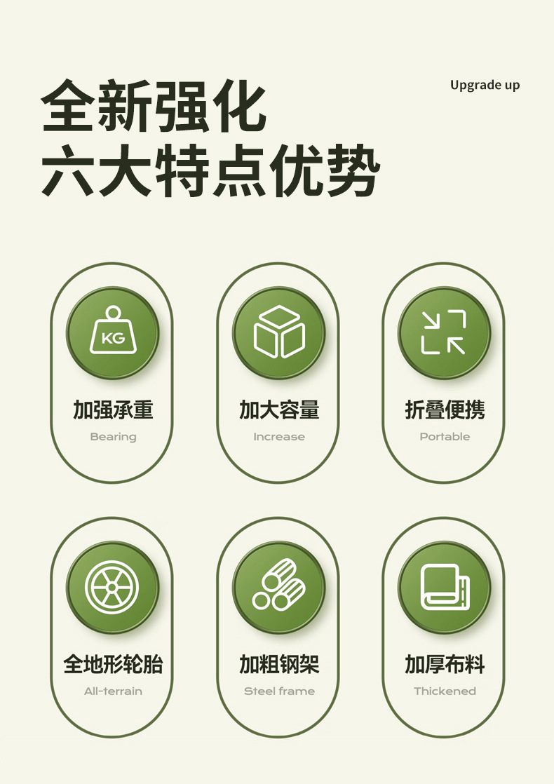 • 10inch 탱크 휠 카키색 견고한 모델은 뒤로 젖힐 수 있음 + 높이 조절 막대 + 테이블