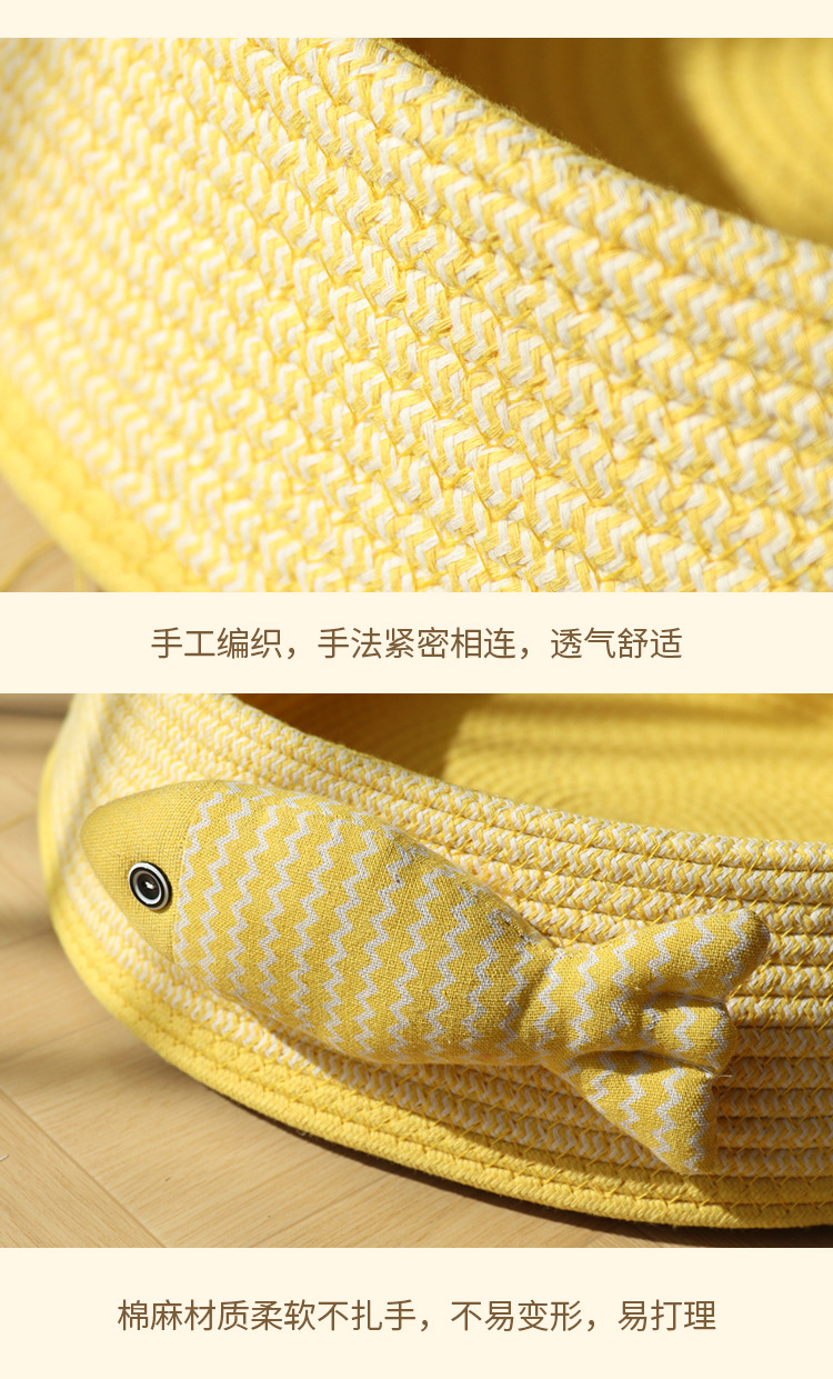 • 접힌 골판지 노란색 + 작은 물고기 + 흰색 면 패드 + 흰색 베개