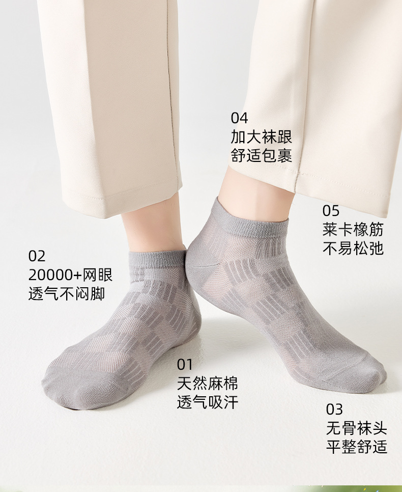 [10A 항균] 양말 남성용 양말 여름 얇은 면 및 린넨 탈취제 땀 흡수 통기성 안티 힐 드롭 남성용 보트 양말