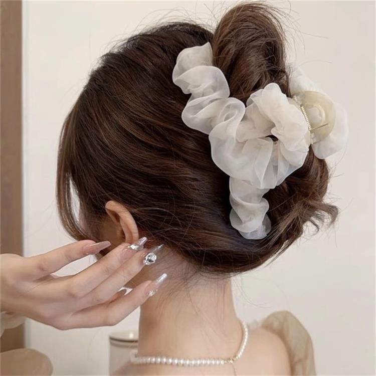 • 화이트 패브릭 거즈 꽃 헤어그립 [13cm]