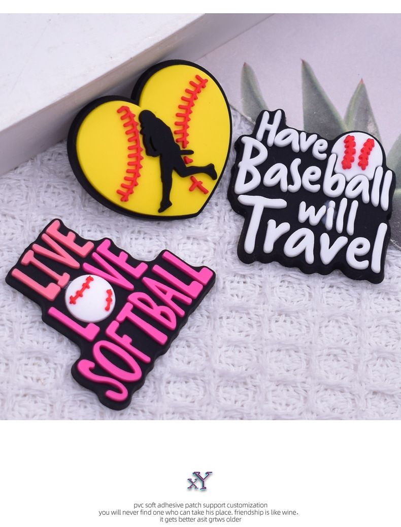 국경 간 야구 스포츠 시리즈 PVC 부드러운 비치 가방 작은 패치 DIY 구멍 신발 꽃 냉장고 자석 및 기타 액세서리