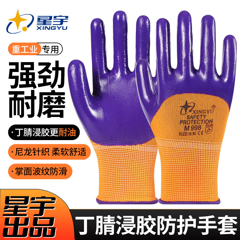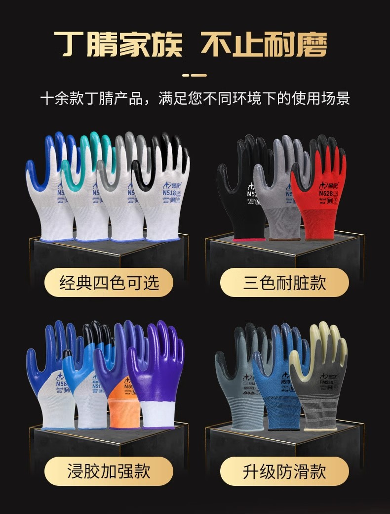 Xingyu N518 니트릴 장갑 내마모성 작업 미끄럼 방지 고무 노동 건설 현장 보호 노동 보호 장갑 두꺼운