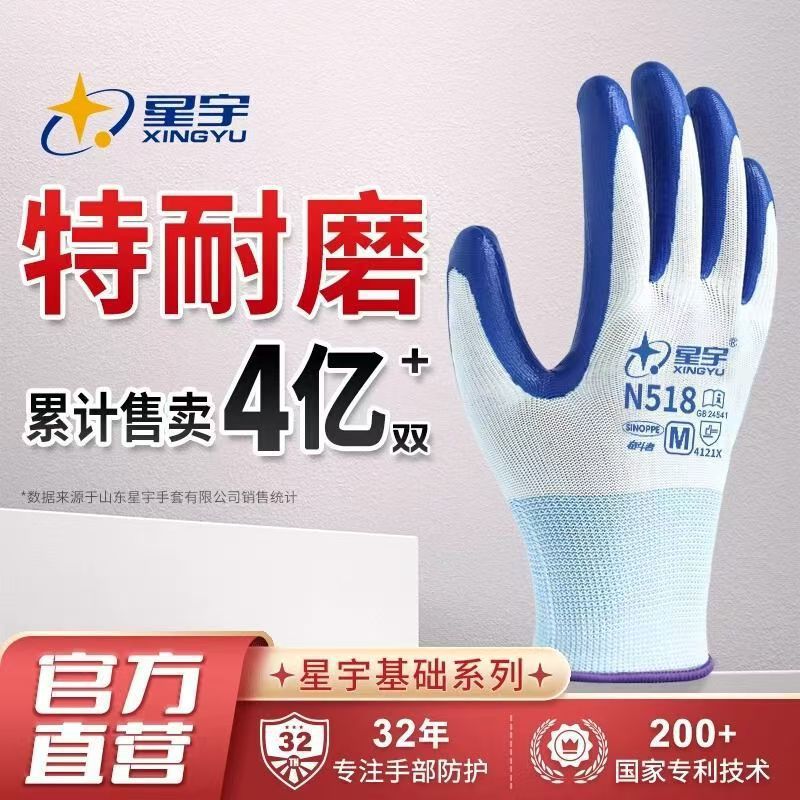 Xingyu N518 니트릴 장갑 내마모성 작업 미끄럼 방지 고무 노동 건설 현장 보호 노동 보호 장갑 두꺼운스토어 가기