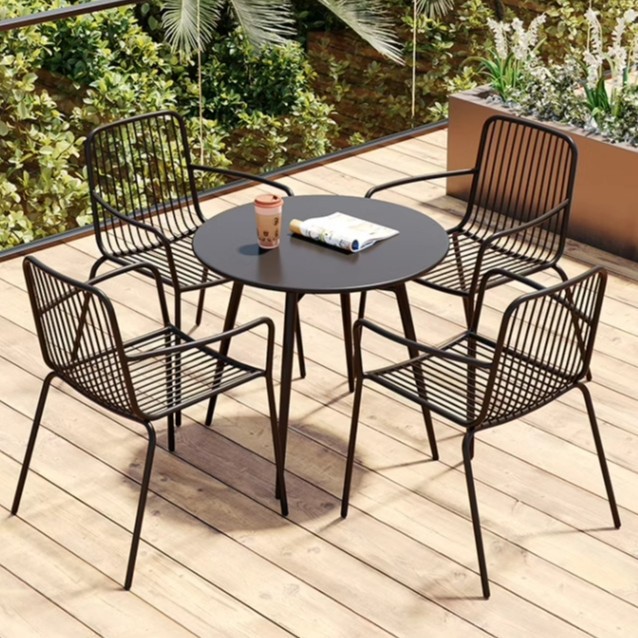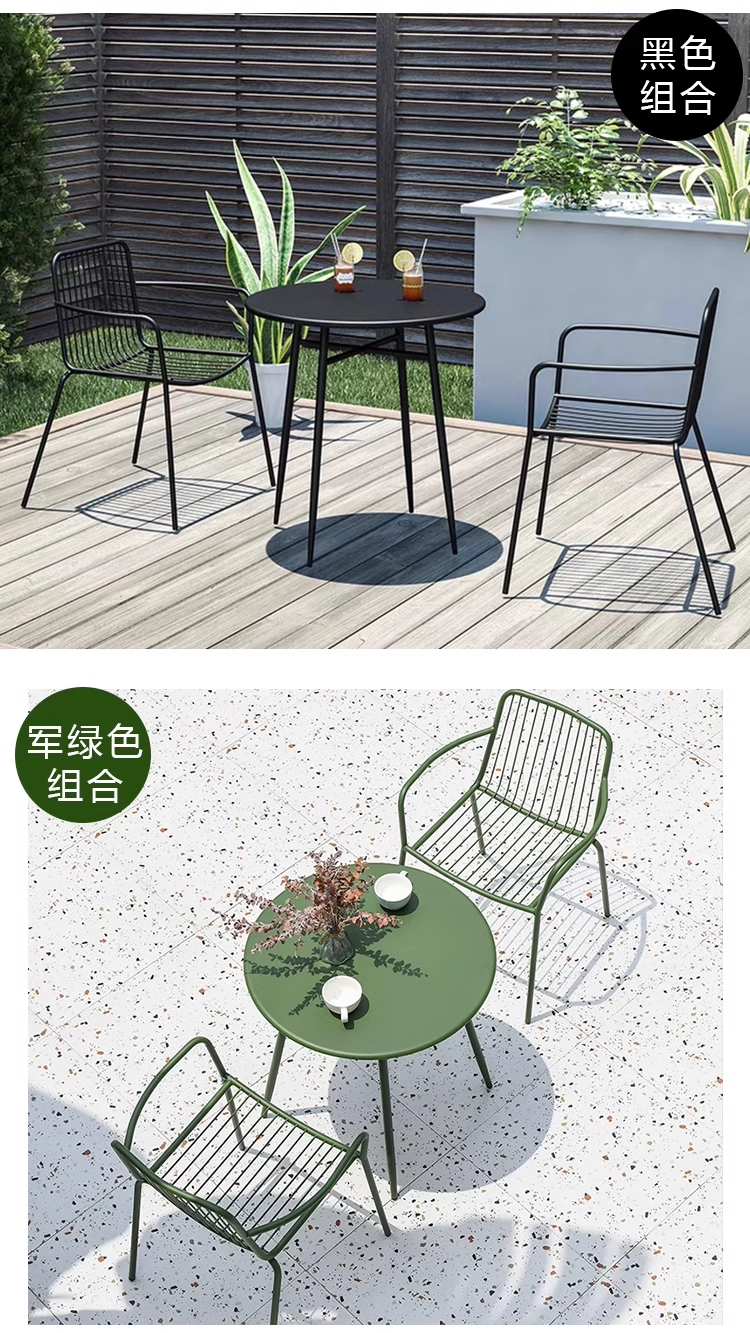 북유럽 야외 레저 철제 테이블과 의자 발코니 티 테이블과 의자 3피스 세트 밀크티 숍 철제 야외 테이블과 의자 안뜰