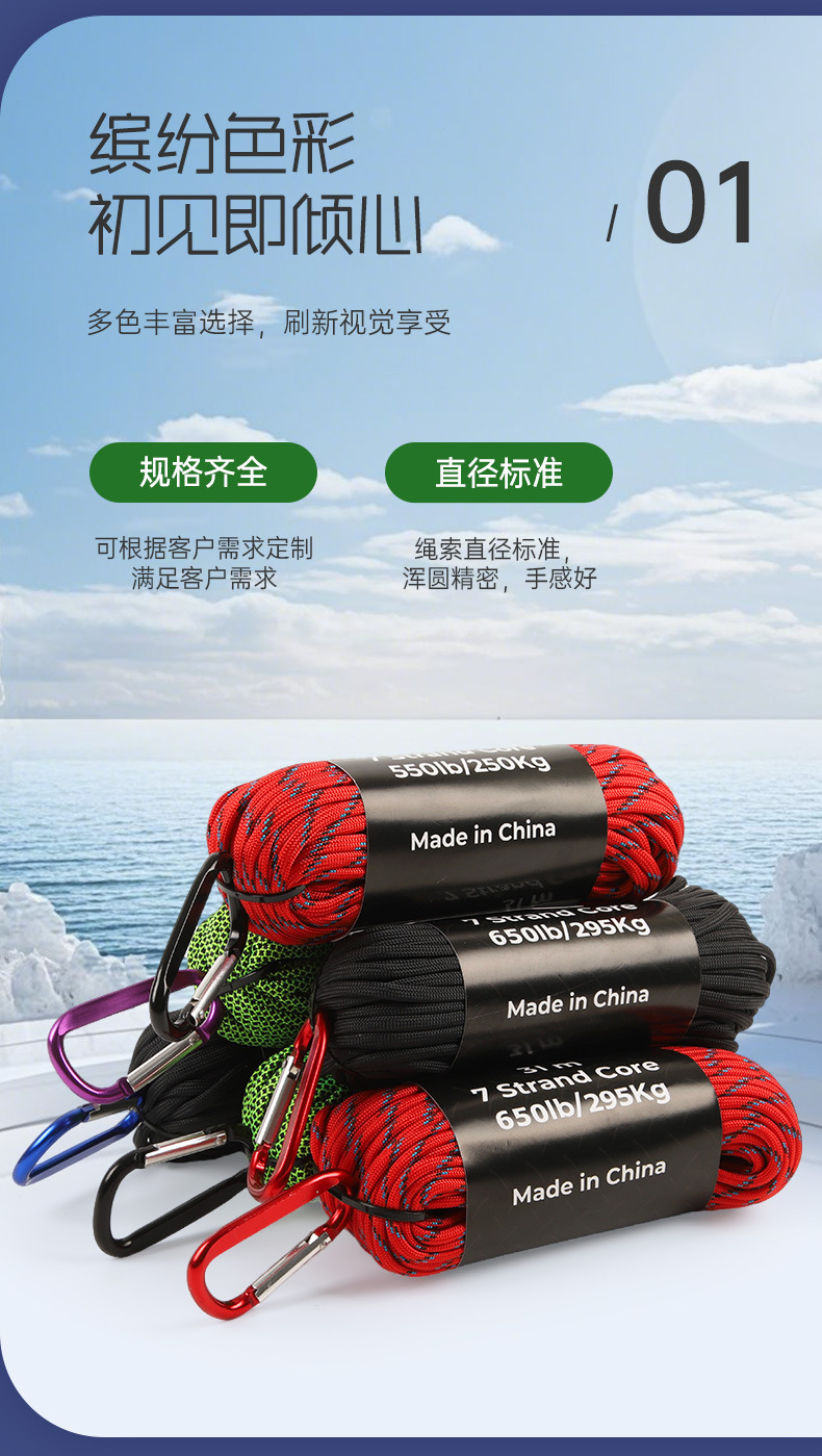 4mm 후크 31 m 550 파운드 650 파운드 우산 로프 7 코어 우산 로프 컬러 꼰 로프 낙하산 로프 폴리 에스테르 로프
