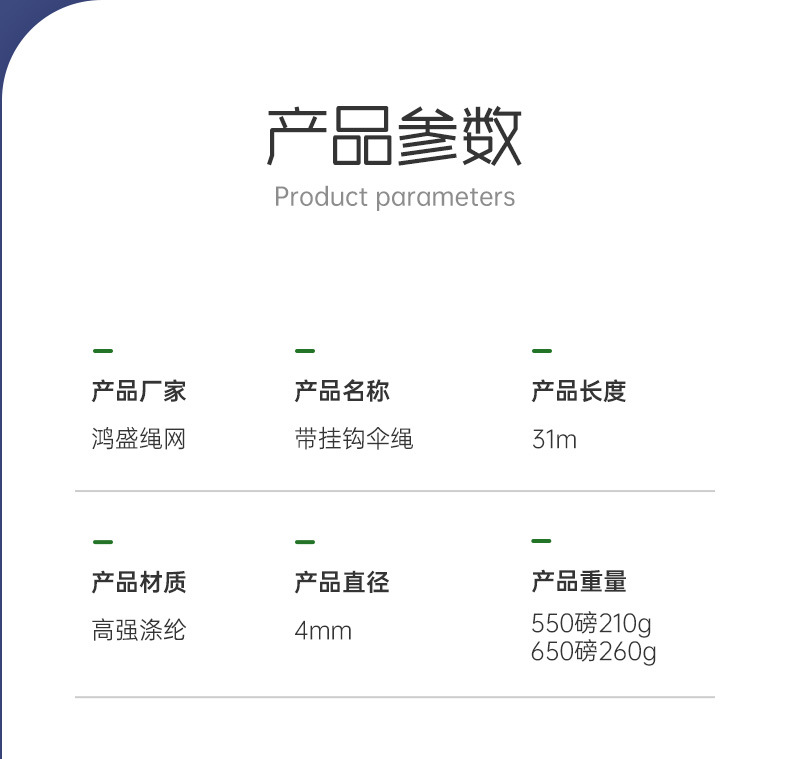 • 후크가 있는 31m 파라코드*라이트 그린*550파운드