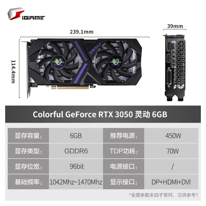 전자 스포츠 게임을위한 7 개의 무지개 iGame RTX3050-6G 스마트 비디오 카드