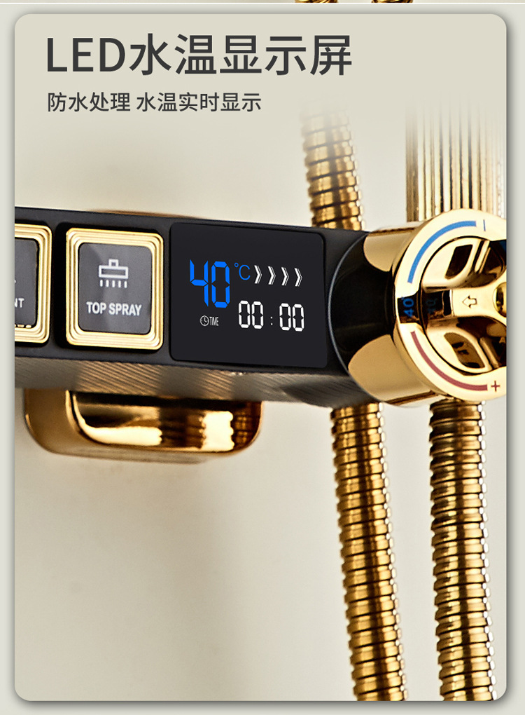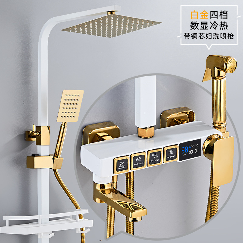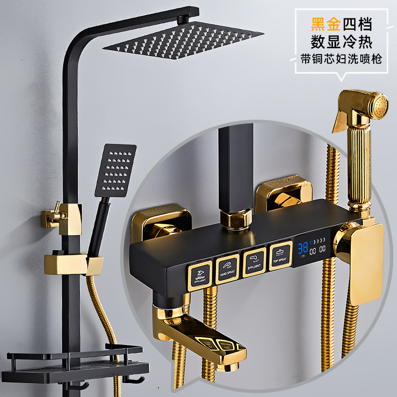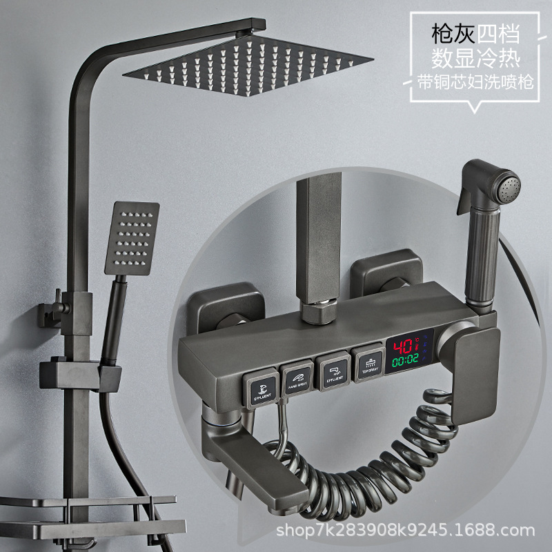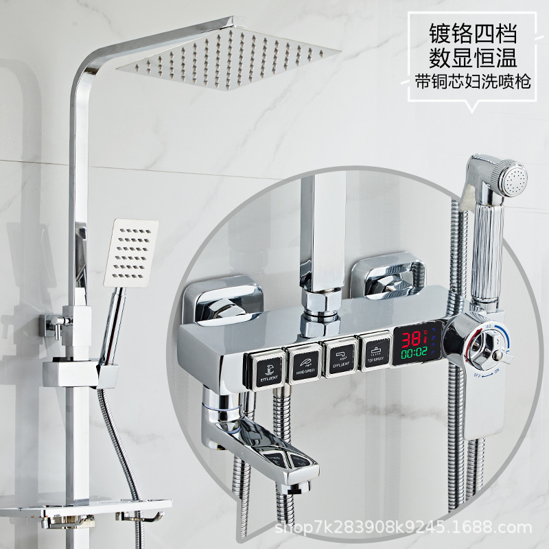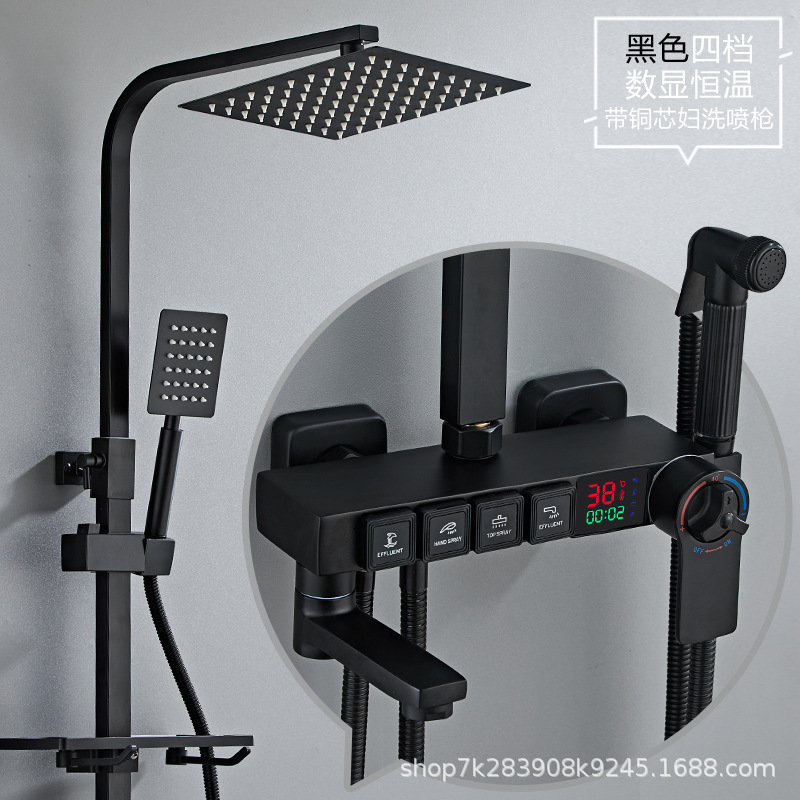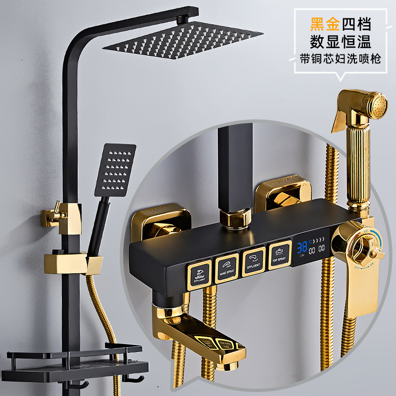 디지털 디스플레이 샤워 키트 가정용 전체 구리 항온 샤워기 욕실 화장실 목욕 샤워기 가압